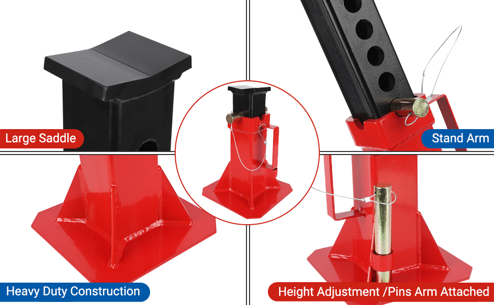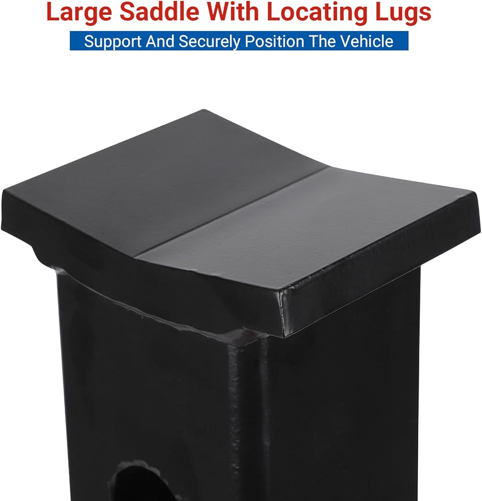 【Large Saddle Support】This pair of jack stands features a 12-ton load capacity, with a large positioning saddle, our truck jack stand can firmly position the vehicle, making the entire use more stable and secure. Heavy gauge steel frame to help prevent distortion or twisting.