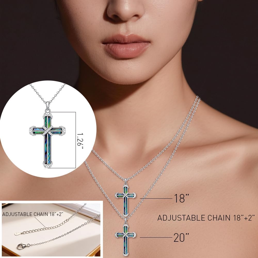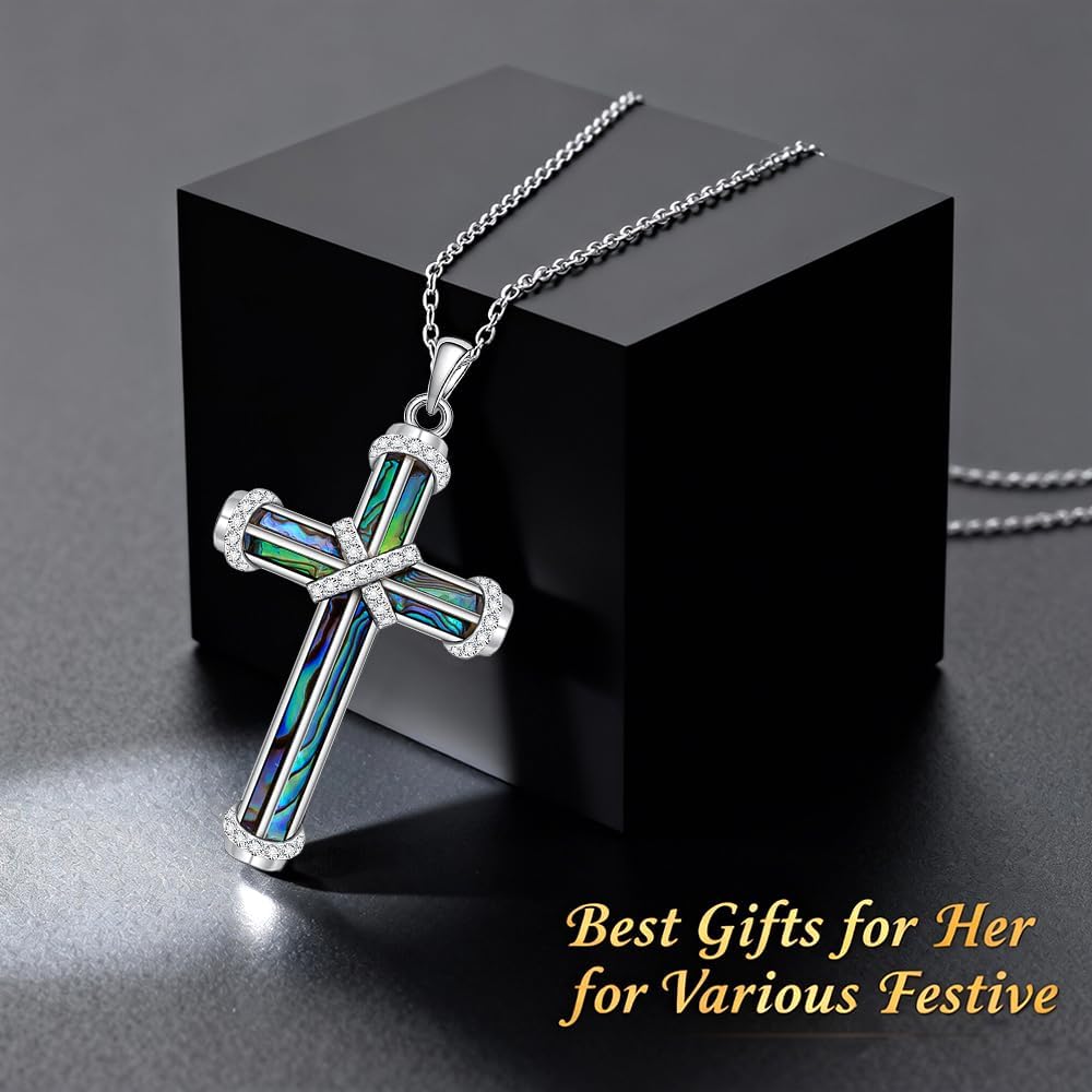 Cross Necklace For Women:The lustrous abalone shell inlaid in the sterling silver cross,wrapped by a delicate infinity chain,it's a symbol of eternal faith,wearing this cross necklace for women when you want to carry unshakable belief close to your heart