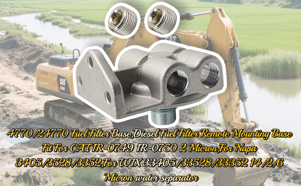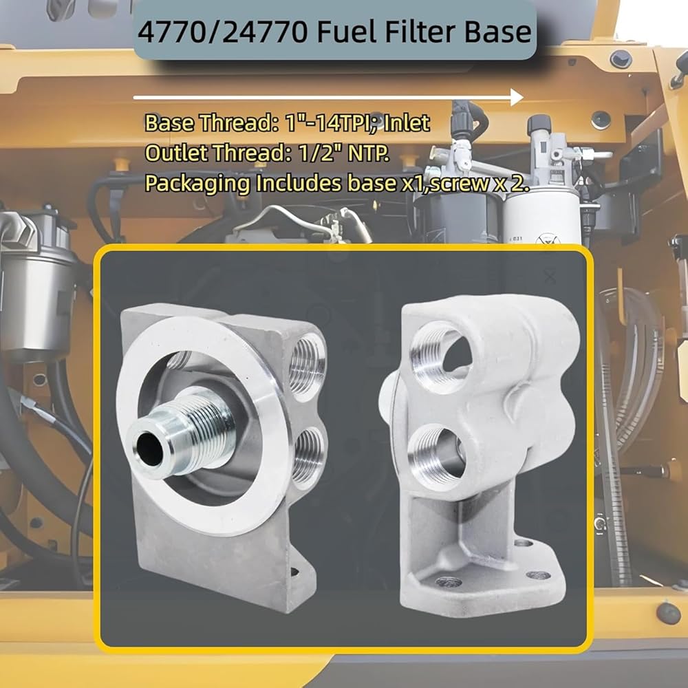 4770/24770 Fuel Filter Base,Diesel Fuel Filter Remote Mounting Base Fit For CAT 1R-0749 1R-0750 2 Micron,For Napa 3405/3528/3352,For WIX 33405/33528/33352 14/2/6 Micron water separator