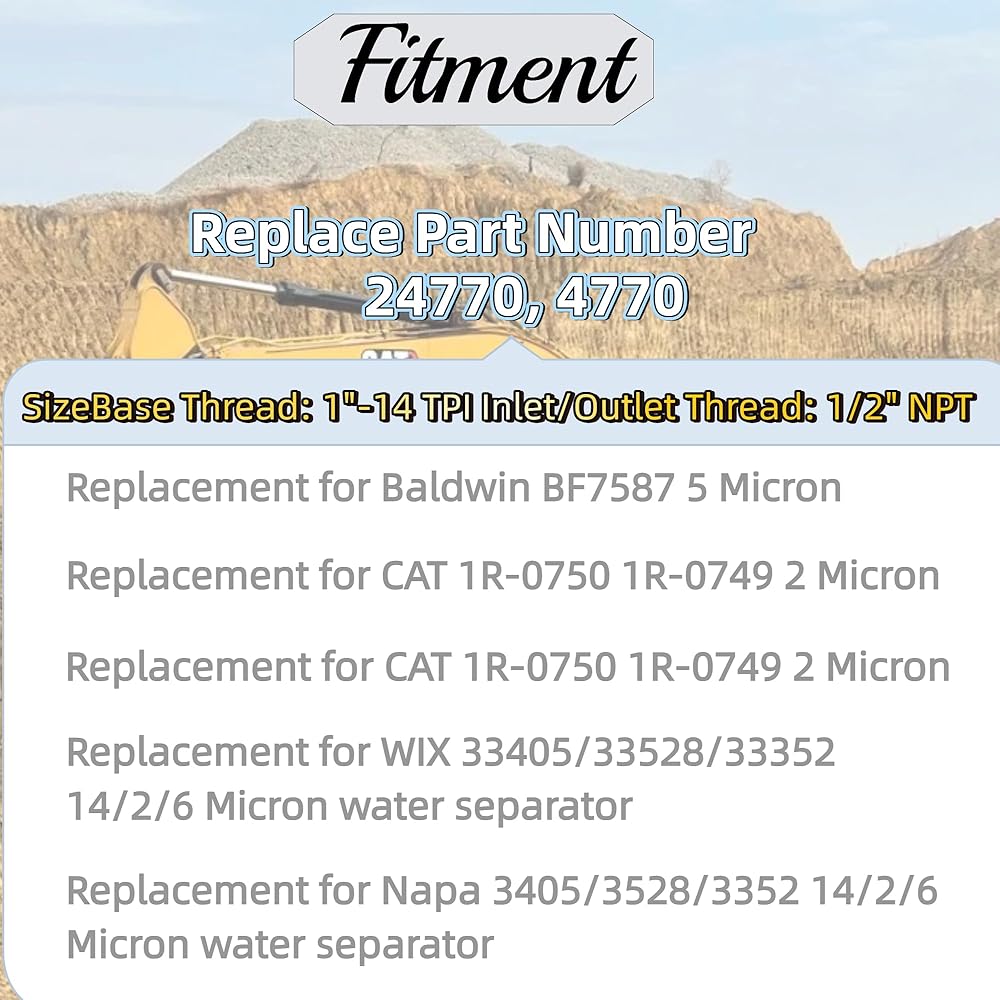 - Compatible With CAT:For CAT 2 Micron 1R-0749,For CAT 2 Micron 1R-0750,For CAT 10 Micron 175-2949 Water Separator.