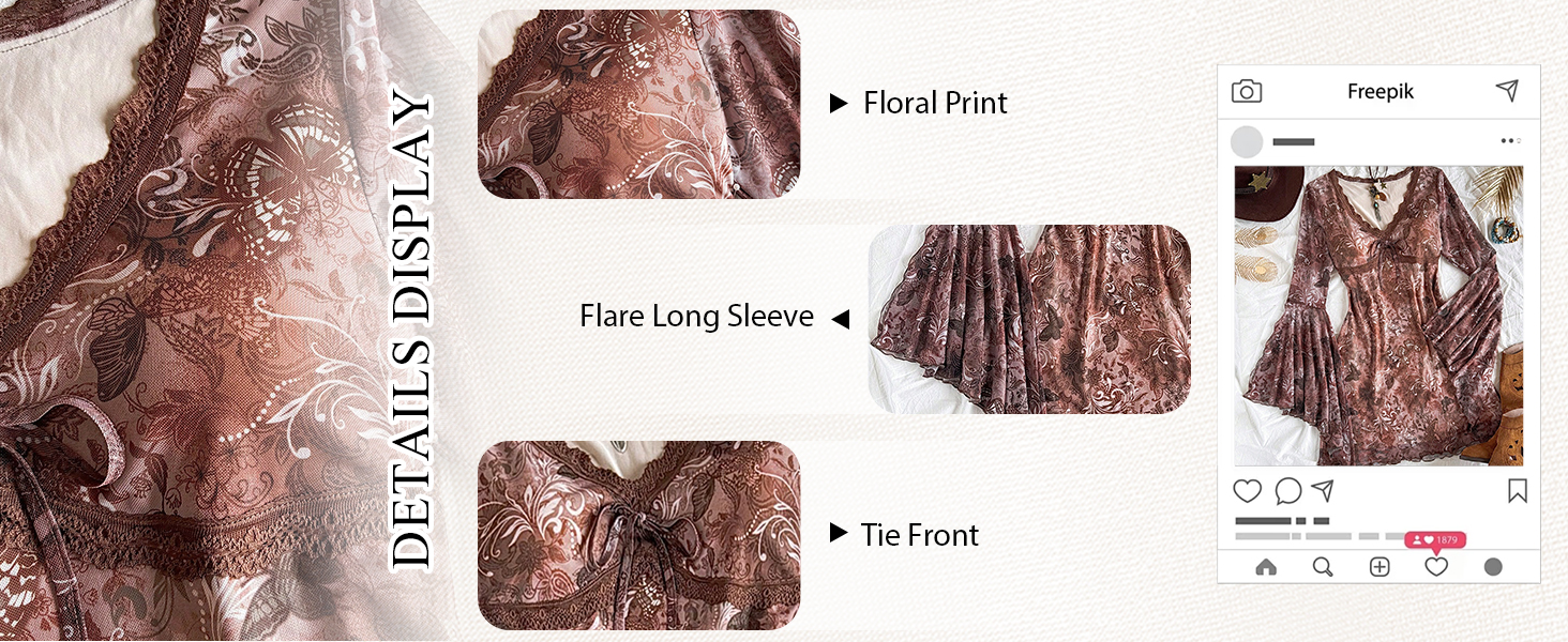 - Feature: Butterfly print, floral print, flare long sleeve, v neck, tie front, bohemian mini dress, western dresses for women, boho dress for women