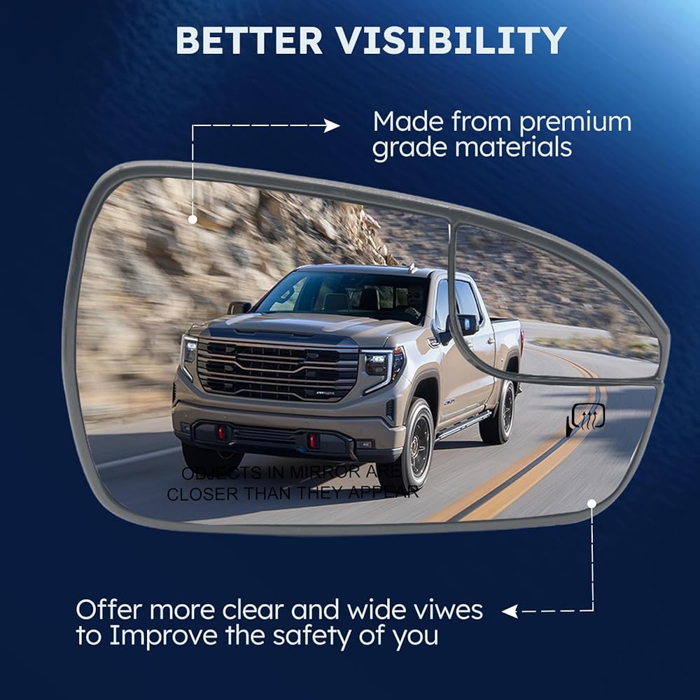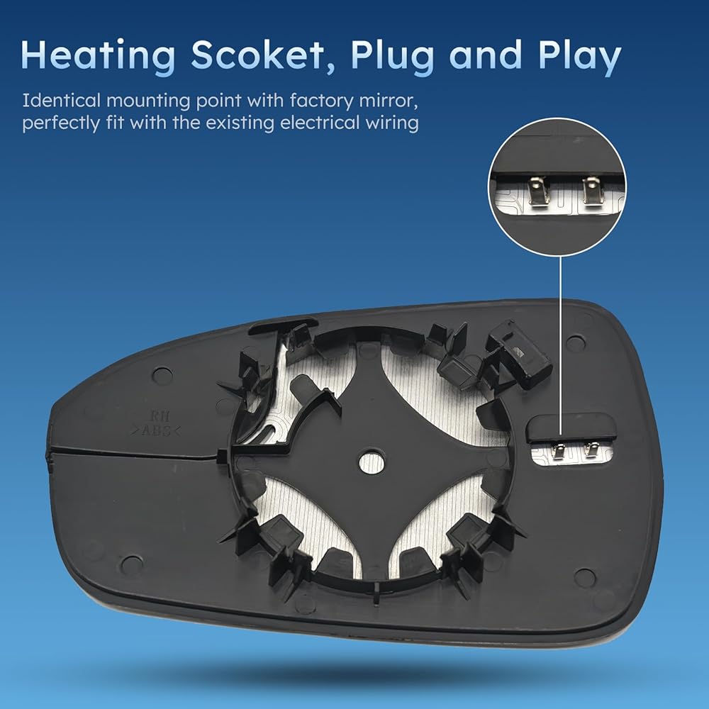 Better Visibility - Heated Mirror Glass Is Heated To Melt Ice And Snow Or To Remove Fog By A Heating Element Behind The Glass. This Side Mirror Replacement Made Constructed Of High Quality Abs Plastic And Glass, Durable, Reliable And The Glass Will Not Haze. Offer Better Visibility, Improving The Safety Of You. Identical Mounting Point With Factory Mirror. Perfectly Fit With The Existing Electrical Wiring.