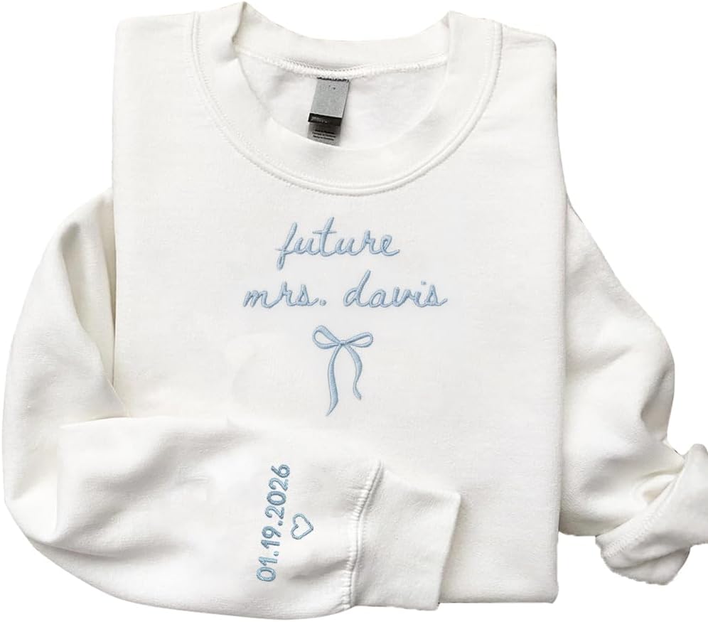 Luxury Custom Embroidered Future Mrs Sweatshirt Hoodies, Bride Sweatshirt, Personalized Date on Sleeve, Bide To Be Gifts, Wedding Engagement Gift, Mr & Mrs 3