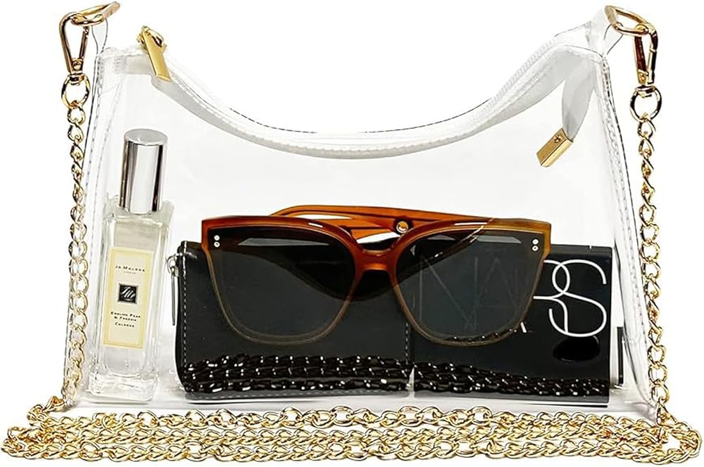 Stylish Clear Bag with Adjustable Chain: Sleek and minimalist design with delicate golden hardware, this clear concert bag adds a touch of elegance to any outfit. Adjustable gold chain allows you customize the length to suit your preference, transforming it into a cute crossbody purse or shoulder handbag