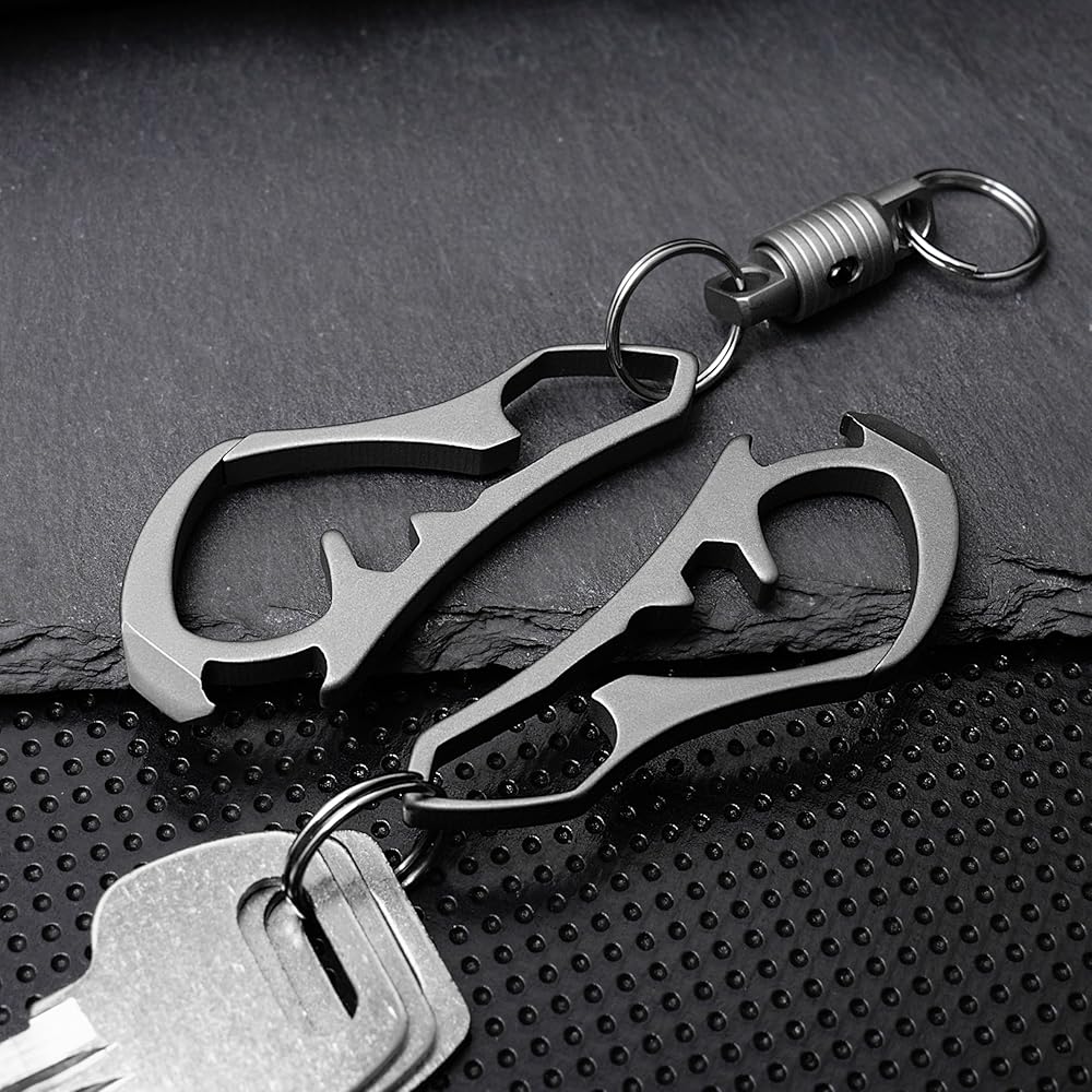 【High quality material】Made of high quality titanium alloy, corrosion resistance, high temperature resistance, high strength, not easy to deform, durable, it is small enough to organize your keys well.