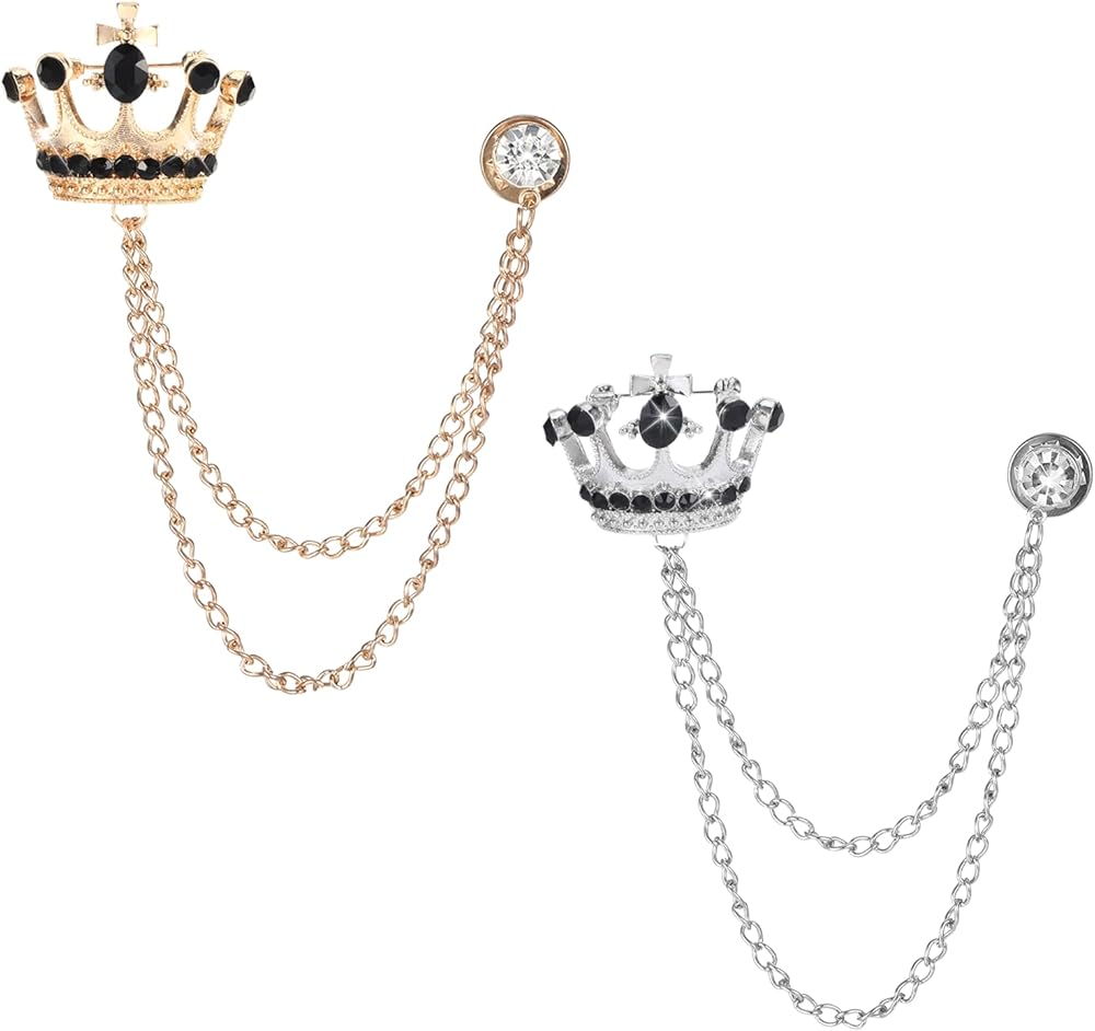 Crystal Crown Chain Brooch Pin: You will get 2 brooches pins, sliver and gold, and a gifts box.you can choose the style you want to wear according to the occasion or preference. The gold style of this lapel pin makes you noble, while the silver style of our brooch pin will make you look low-key and luxurious