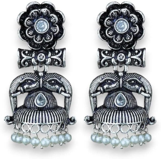 Oxidized Allure: Crafted in alloy metal, these earrings boast a classic oxidized finish, embodying grace and heritage.