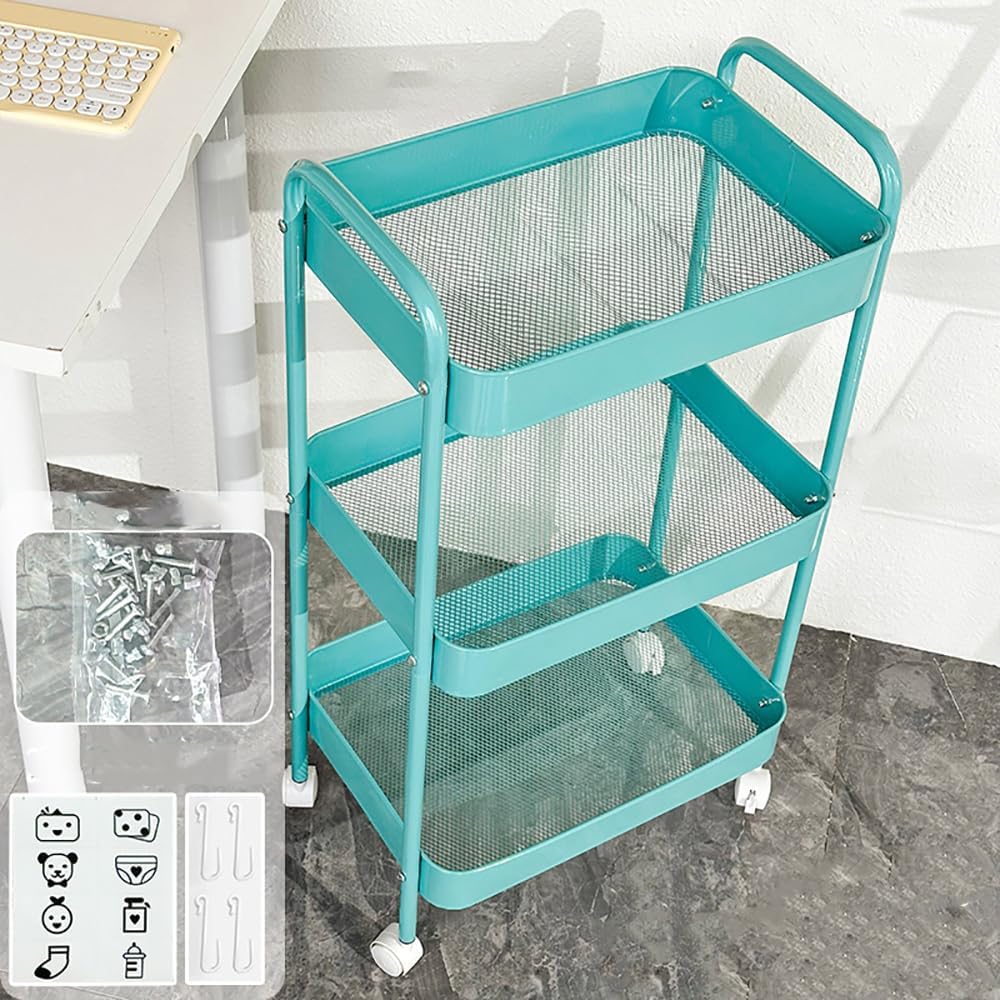 Brake universal wheels: 4 easy-glide durable wheels allows the storage cart to slide to anywhere to use conveniently.