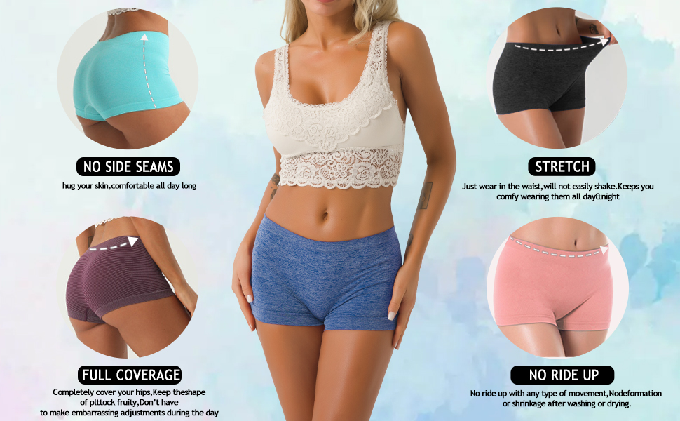 SEAMLESS BOYSHORTS UNDERWEAR: This seamless boyshort panties are not only very soft and skin-friendly, but also the tagless design makes the panties not feel foreign matter in the panties when wearing, and it will not cause allergies caused by the label material.