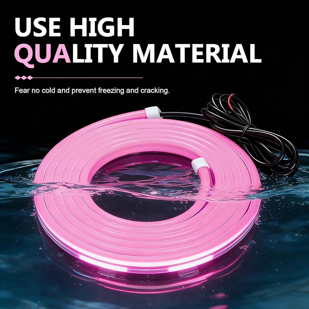 Reliable: This pink led strip is waterproof with PVC sealing package, which can effectively prevent rainwater from entering into the light body, and withstand the harsh outdoor conditions and vibration of the vehicle, and is not easy to short-circuit and aging.