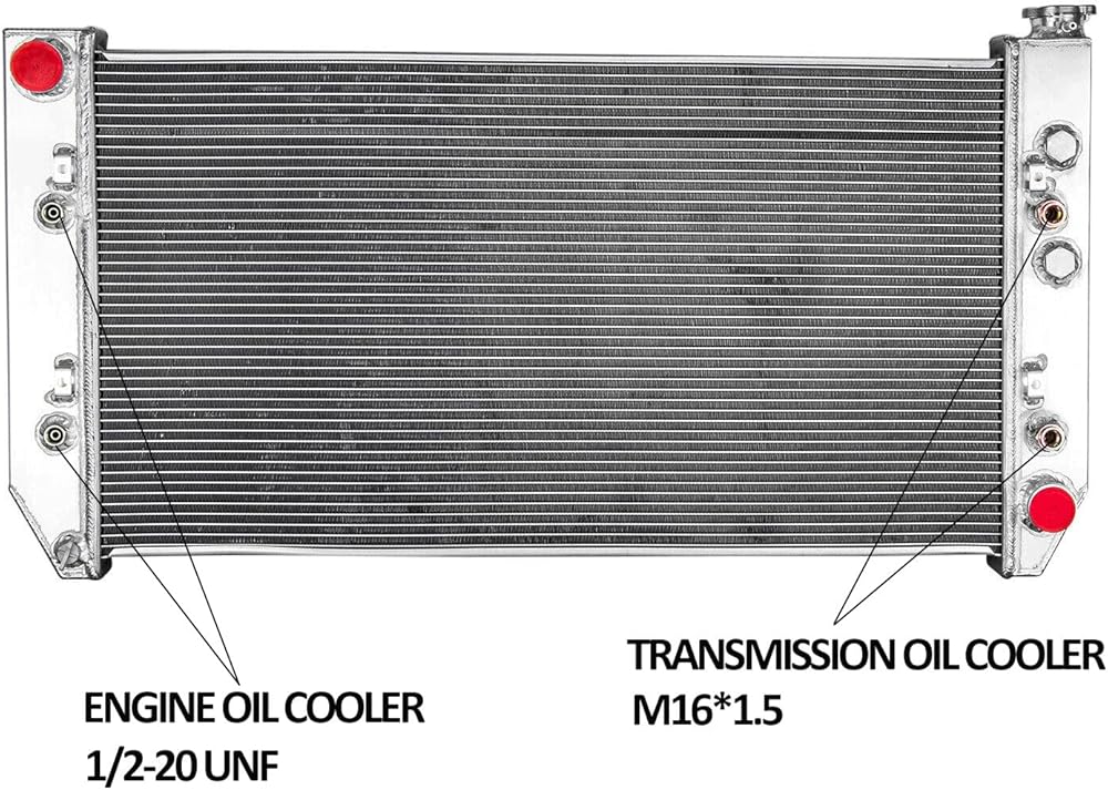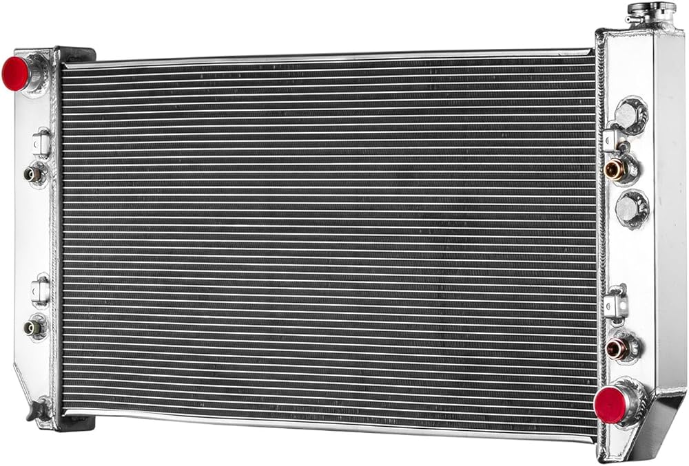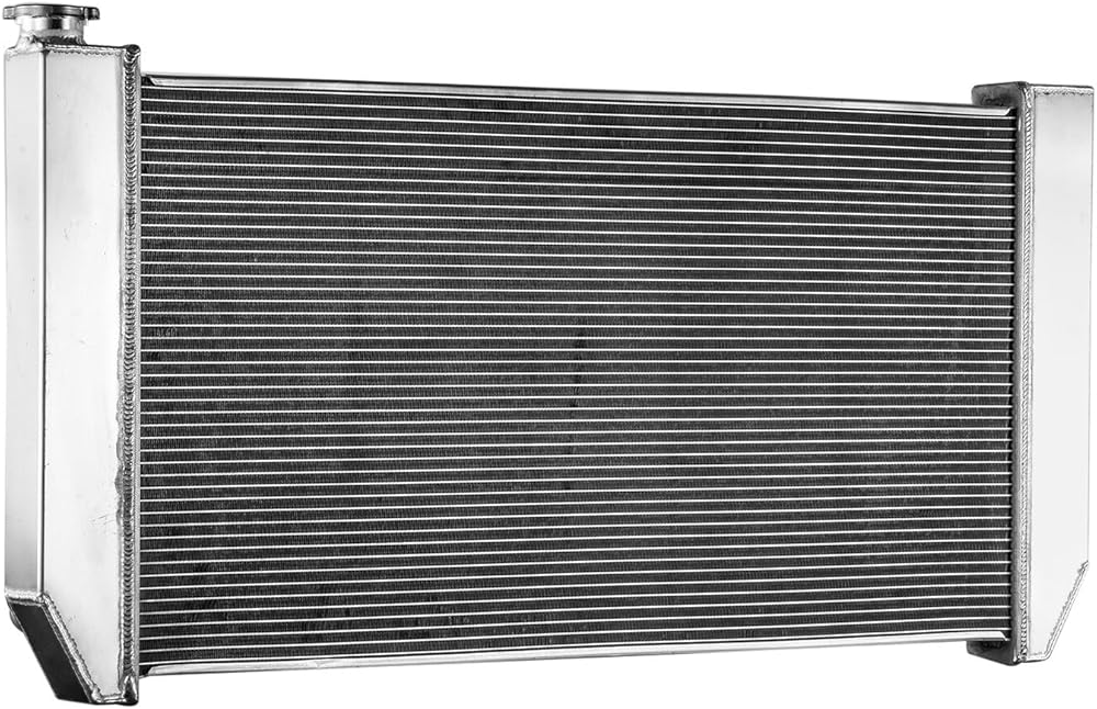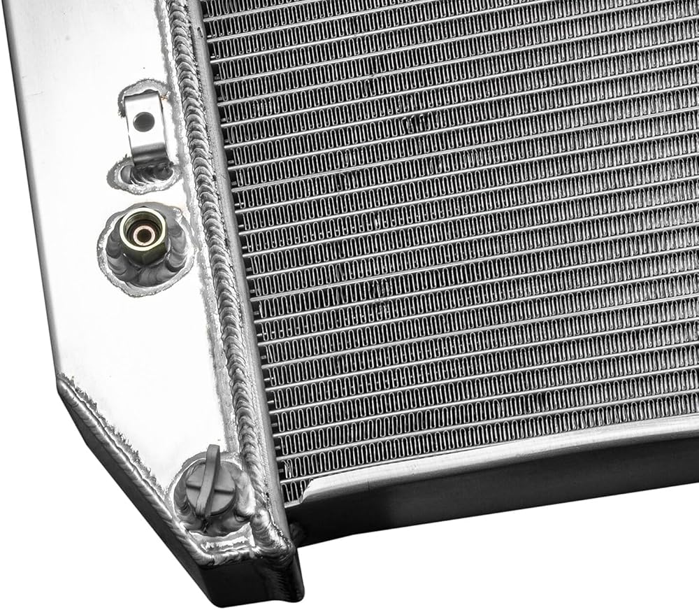 This aluminum radiator is designed to provide maximum cooling efficiency to prevent premature engine failure. Its light-weight, and high-heat transferring aluminum features a tube and fin design that, dramatically increases surface area that enables the heat to dissipate more efficiently. This Aluminum Radiator is at least 40% more efficient than stock ones. Most importantly, it has a much higher capacity for coolant than stock ones, which means that your cooling system will be more efficient and will be more resistant to temperature surges in racing applications.