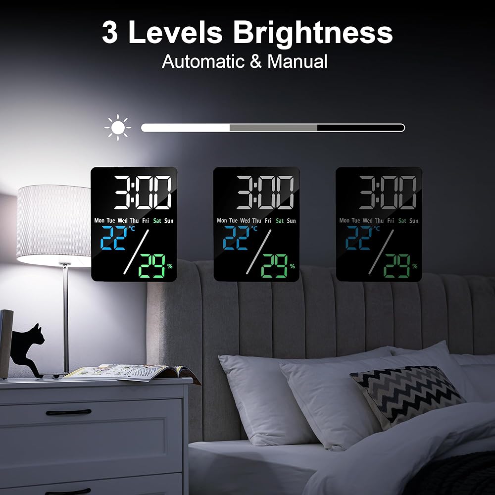 Auto & Manual Brightness: The digital clock features 3 brightness levels, you can manually adjust the brightness or enable the photosensitive function to automatically adjust it, preventing the light from disturbing your sleep at night.