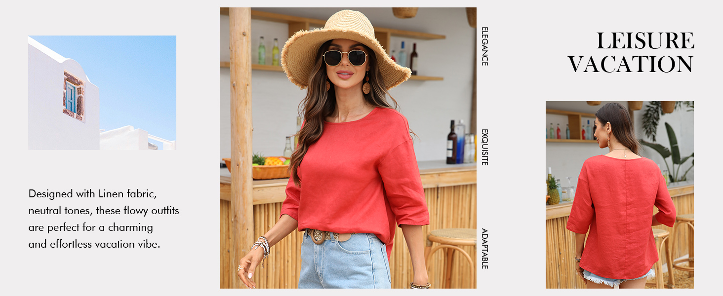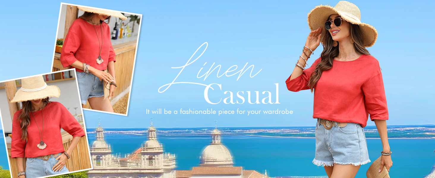 100% Linen Fabric: Crafted from natural flax fibers for lightweight, breathable, and moisture-wicking comfort. Because it's made from 100% linen, the fabric may be slightly sheer, especially in lighter colors, but that's part of its airy charm and what makes it ideal for staying cool in warm weather. This must-have linen top stands out among all linen blouses for women and linen tops for women