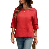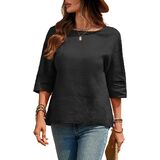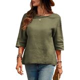 Versatile Pure Linen 3/4 Sleeve Blouse: Versatile relaxed silhouette with a round neckline and 3/4 sleeve, ideal as linen shirts for women, on-trend womens linen tops, chic linen shirt women, or stylish womens summer shirts