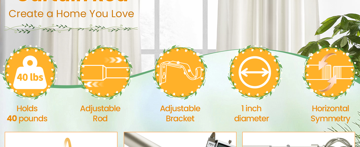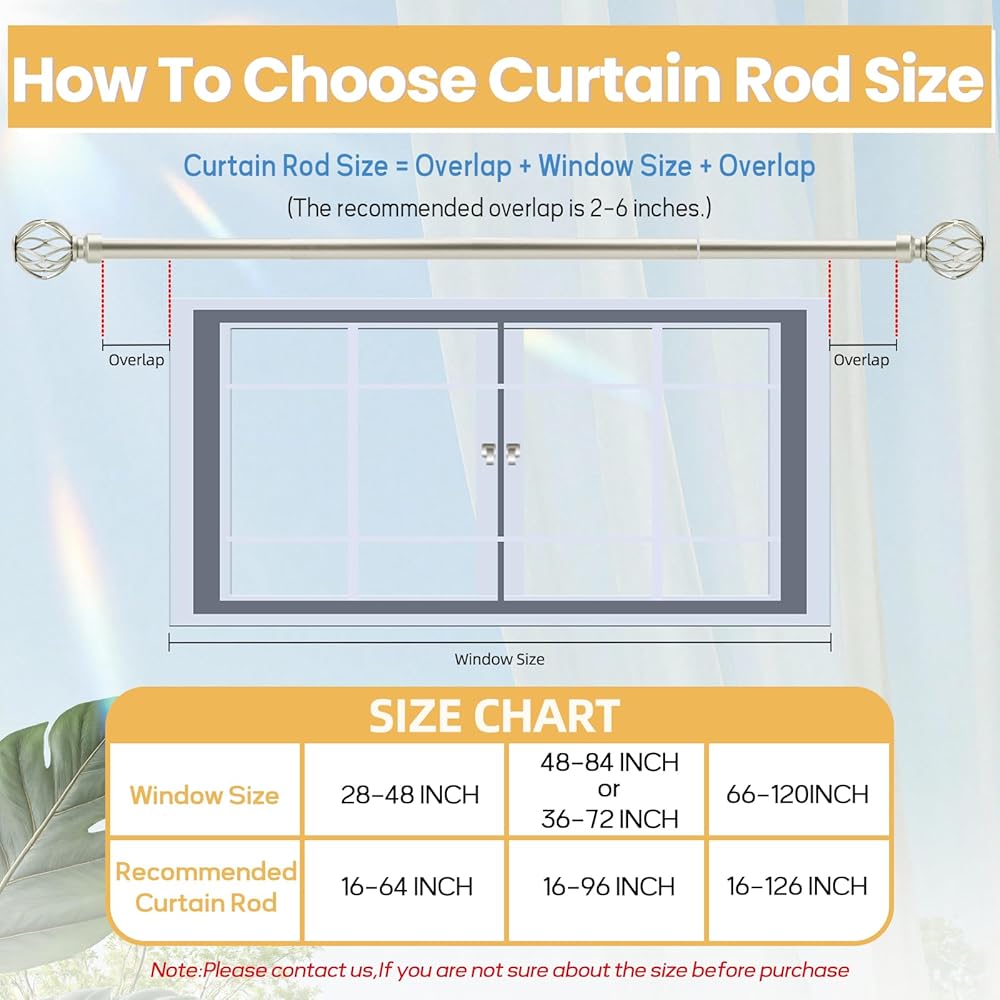 PERFECT ADJUSTABLE FIT Easily adjust the rod from 48 to 84 inches to fit your window perfectly. The total span with finials extends from 18 to 96 inches, offering versatile installation for various window sizes.