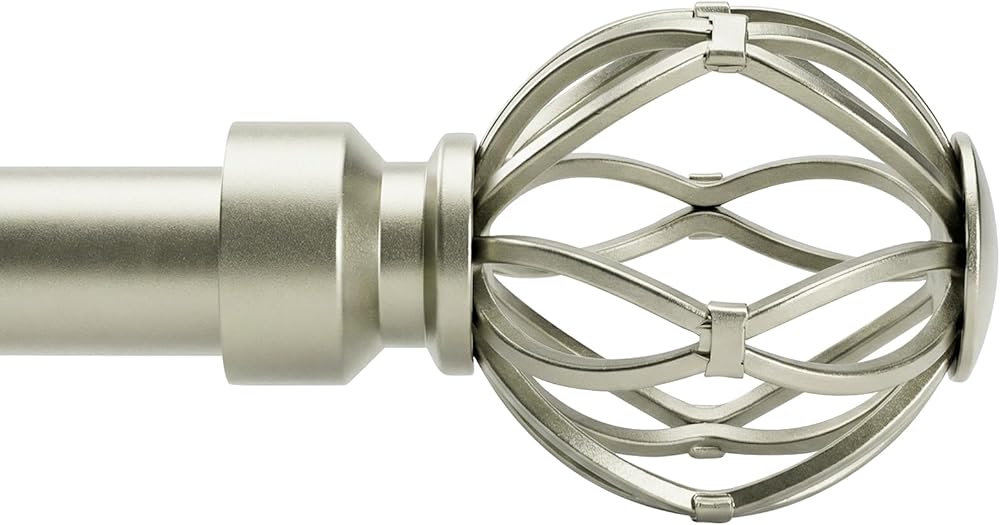 Silver Curtain Rods 18 to 96-inches, 1-inch Diameter Heavy-Duty Adjustable Decorative Curtain Rods for Windows 48 to 84 inches, With Modern Decorative iron Twisted Cage Finials