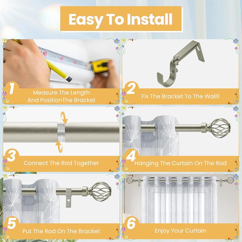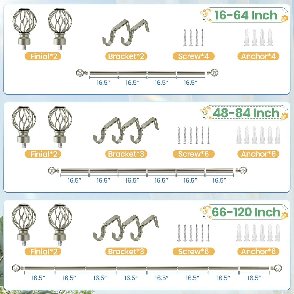 COMPLETE PACKAGE Everything you need is included: the adjustable curtain rod pair, two decorative silver finials, mounting brackets, and screws—a ready-to-install solution for your windows.