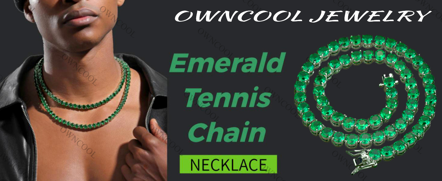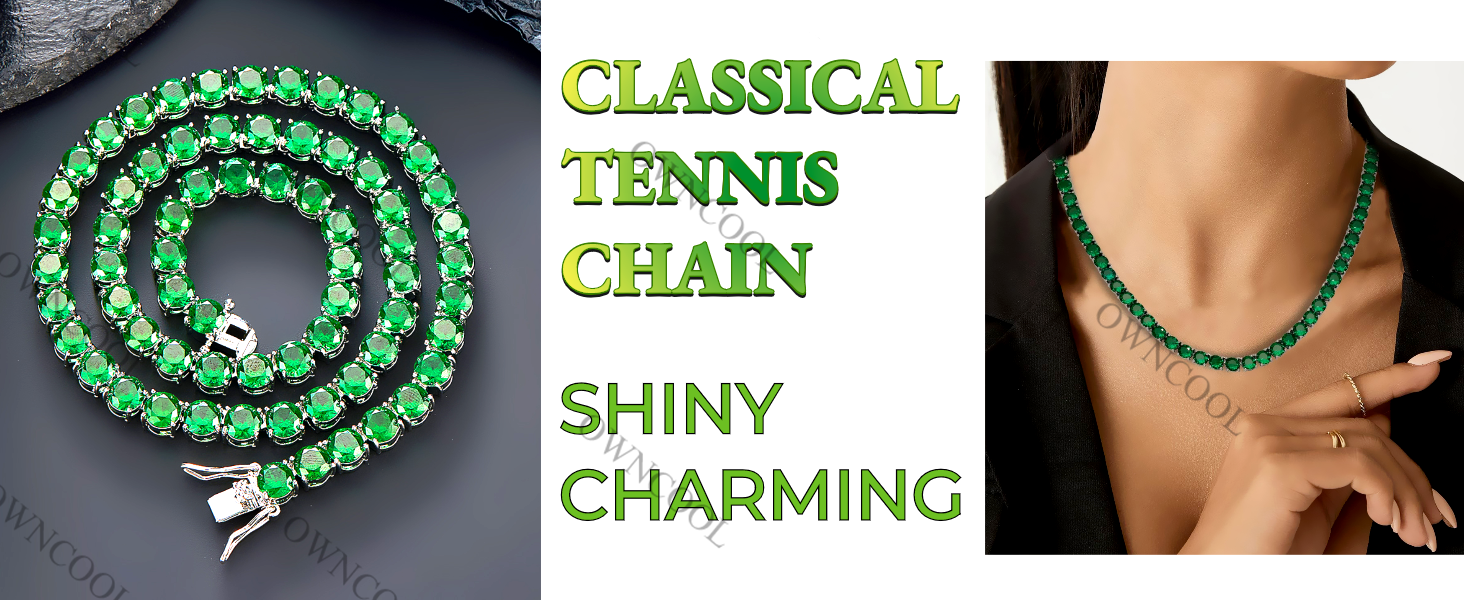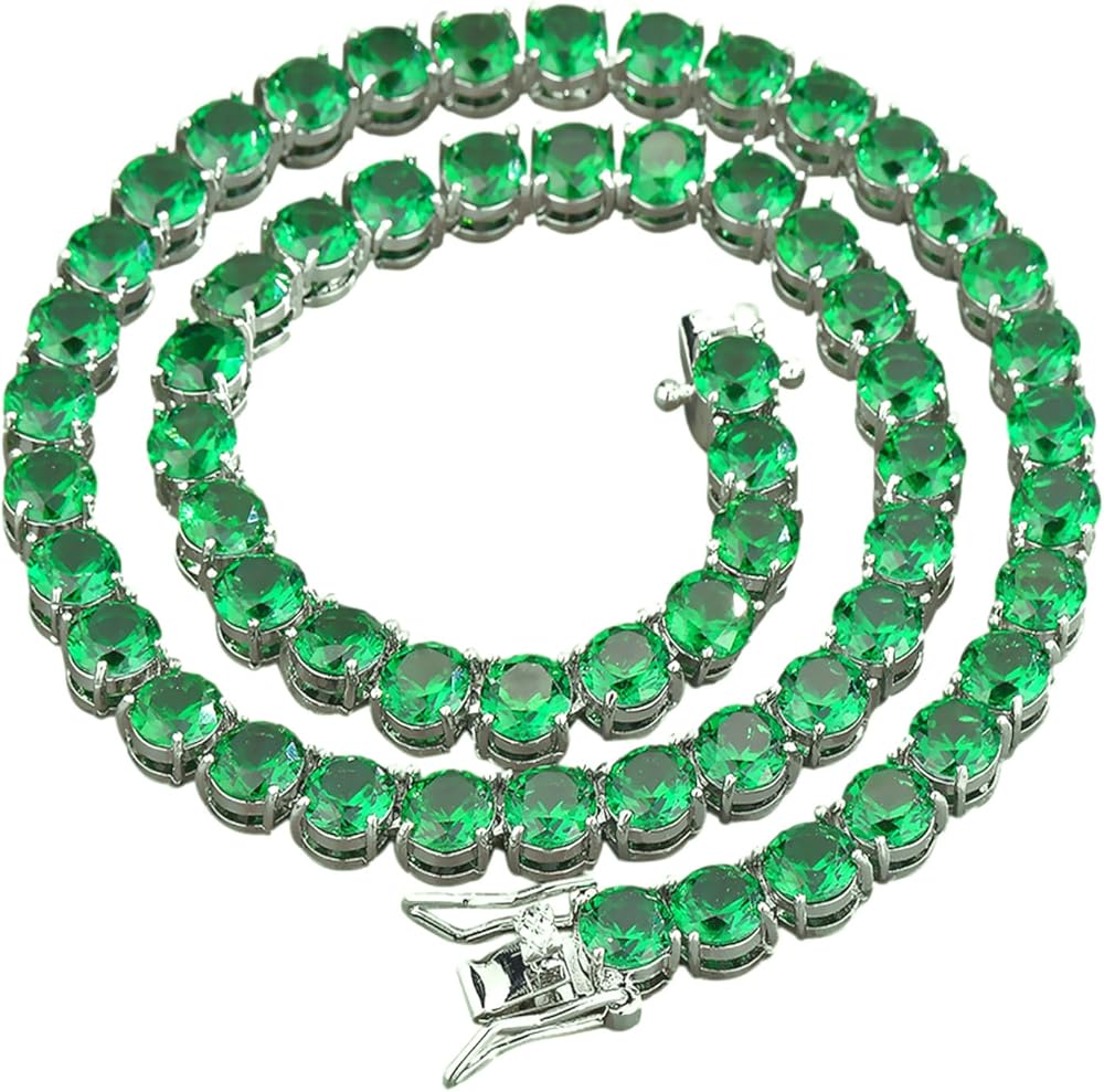 【Suit for All Occasion】 -- Such diamond tennis chains are perfect for hip hop, rappers, party, band, photo and video shoots, keep you stand out from the crowd. The classic style of emerald necklace is a perfect piece of jewelry that will get everyone to compliment you.
