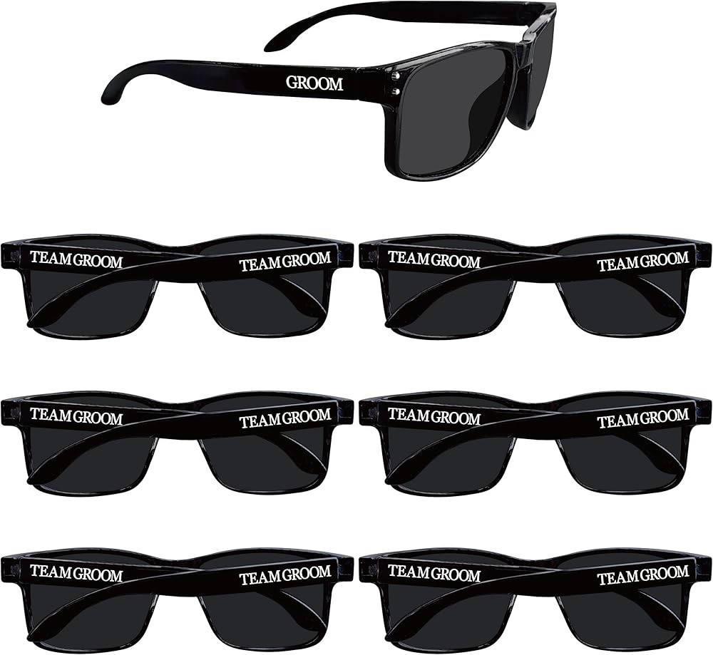 【Groomsmen Sunglasses】:Groom sunglasses for bachelor party contain a total of 1 pair of groom sunglasses and 6 pairs of groom squad sunglasses. Ideal for groomsmen gifts, bachelor party, engagement celebration, and wedding reception.