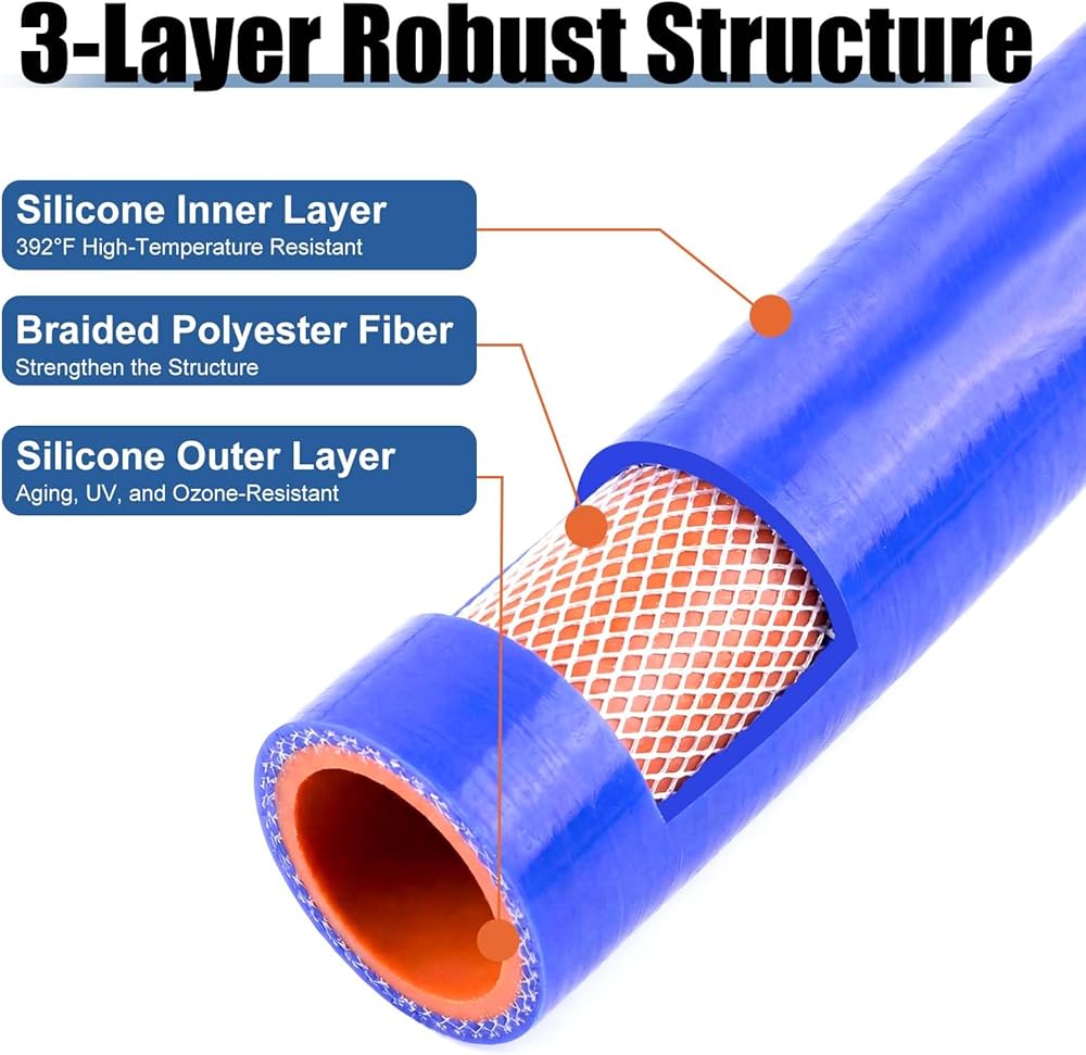 • Premium Silicone with Nylon Reinforcement: High-strength, flexible silicone hose reinforced with nylon fiber for superior durability and resistance to cracking, aging, and chemicals.