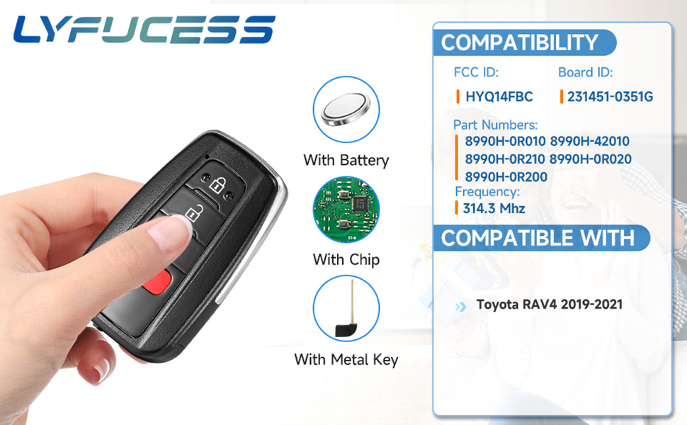 COMPATIBILITY:Compatible with Toyota RAV4 2019-2021.【Note】Please ensure your key matches the original in button layout.