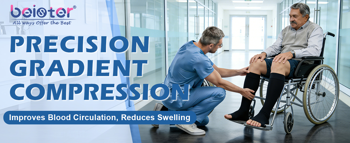 THERAPEUTIC EFFECT: Beister will bring you well-designed compression support socks that provides graduated compression from the ankle to upper calf. Therapeutic compression hosiery which promotes blood circulation, helps relieve tired, aching, fatigued legs. Ideal for treatment of varicose and spider veins, diabetic support, long flights and general swelling or inflammation of the legs and feet