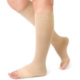 HUMANIZED DETAIL: Flexible but snug in wider cuff with elastic band helps the socks remain in place throughout the day. Open toe style does not compress toes and squeeze your aching toe joints, preventing pains. Reinforced heel is designed for long lasting durability and comfort. Thicker, ultra-stretchy fabric is for donning easily