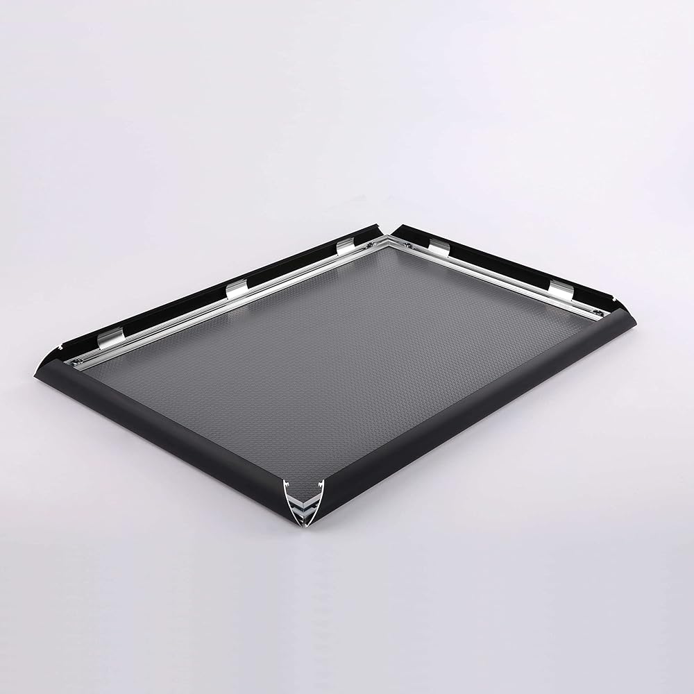 FRONT LOADING: The use of this aluminum frame is fairly easy. To load or change a graphic, simply snap open the four spring-loaded frame edges, remove the anti-glare transparent cover and place graphic, picture, photo, poster and or artwork as required, then snap close the frame edges. The anti-glare cover allows a clear view of the print, poster and protects the artwork from dust and direct light.