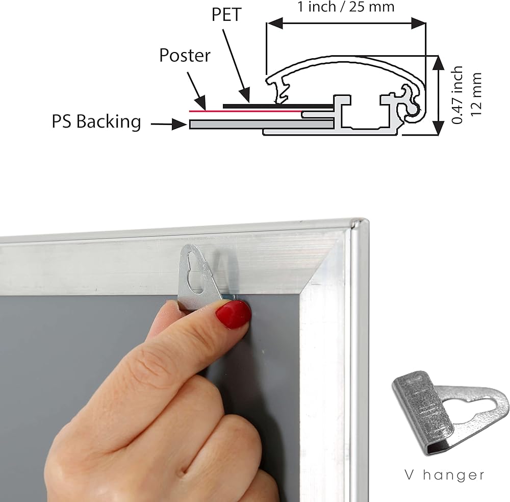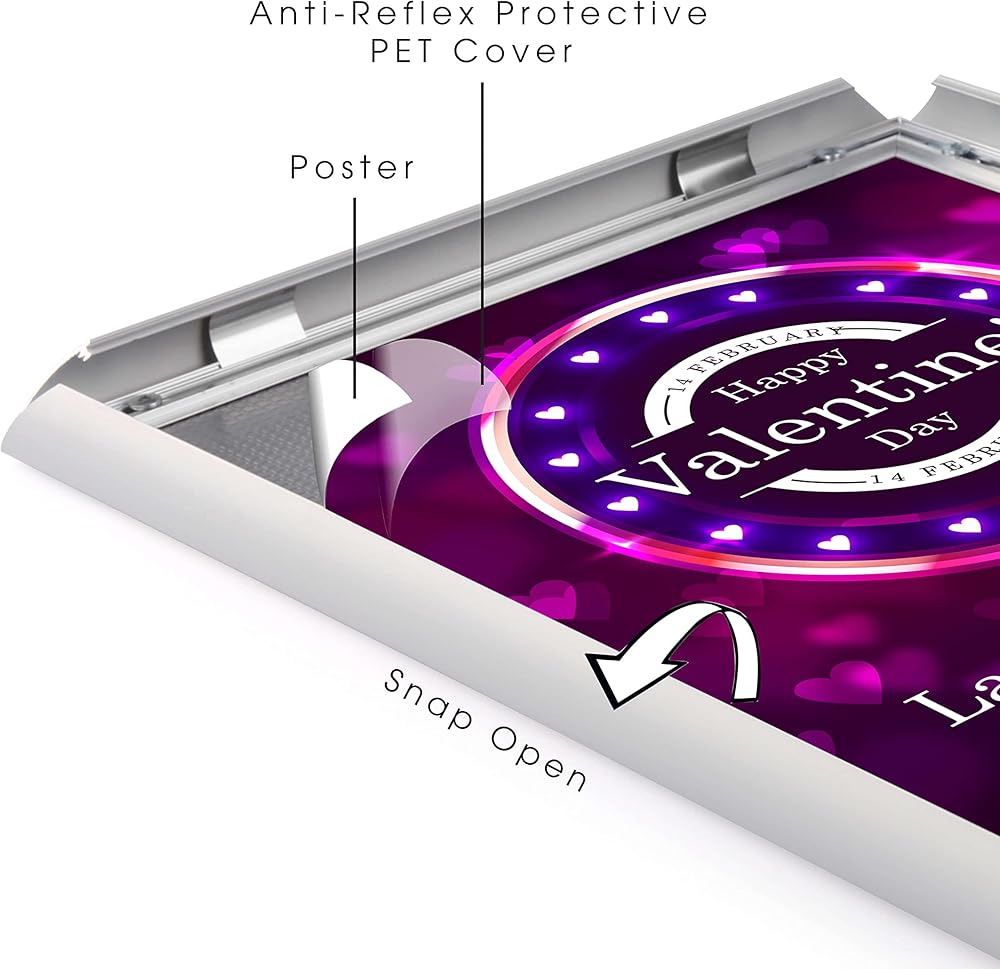 INNOVATIVE SNAP-OPEN DESIGN: Features a user-friendly, spring-loaded aluminum mechanism that allows you to change graphics in seconds. Simply snap open all four frame edges, place your poster or artwork, and snap shut—no tools required and no need to remove the frame from the wall.