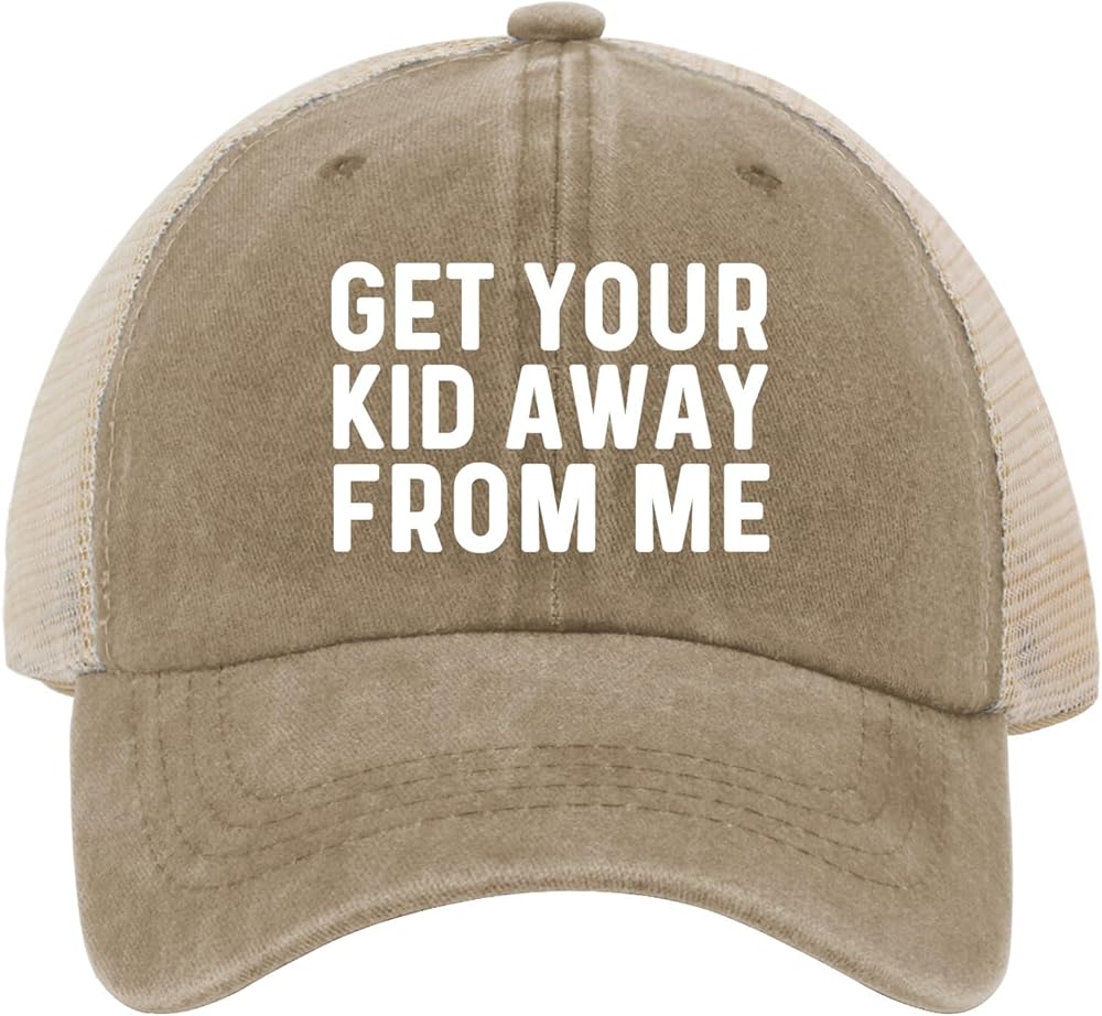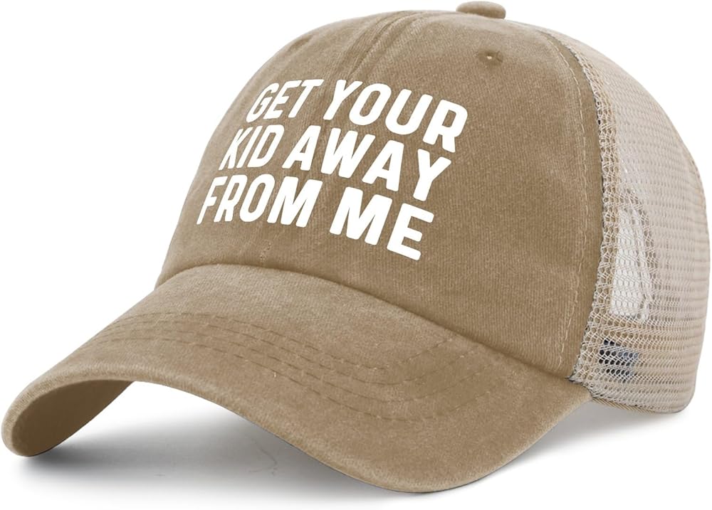 Trucker Hat GET YOUR KID AWAYS FROM ME Hat Trucker Hat Women Vintage Mesh Cap for Men and Women Breathable Hat for Summer, Vintage Trucker Hat Washed Denim Baseball Cap Unisex Snapback Adjustable Hat