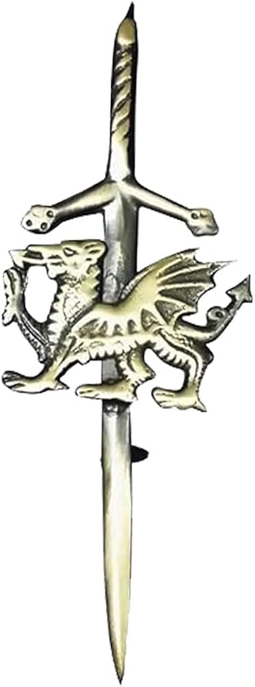 AAR Brand New Wales Dragon Kilt Pin is an essential part of Highland wear. It will add beauty and security to your kilt. The AAR Kilt Pin comes with a Locking Pin in the back for easy locking and unlocking. It is 4 inches long which is the standard Kilt Pin size. AAR Kilt Pins are made with high quality materials. We are very confident that you will love the product and be our returning customer for future purchases. USE OF KILT PIN The Kilt Pin is a piece of jewelry that should be on the right side of the kilt. Its function is to prevent the apron from falling or blowing open by adding weight to the outer apron and is commonly seen as a form of decoration.
