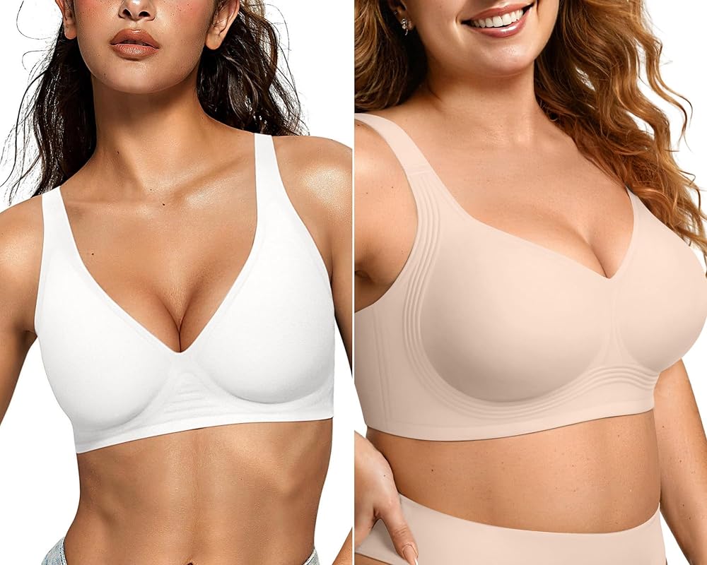 Stylish Deep V Bras for Women - The OEAK Wireless bra adopts a cute plunge design, which gathers and lifts your breasts, setting off the breast line to make your breasts more upright, round, and perfectly shaped. It showcases the seductive collarbones and cleavage under t-shirts and other clothing. The seamless Deep V bras are particularly effective in showcasing a beautiful neckline, making them ideal for wearing under low-cut tops and dresses, thus making your outfit simple and elegant.