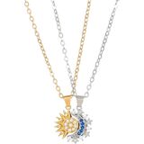 Stylish Style: Features a dazzling sun and moon pendant adorned with sparkling rhinestones, symbolizing eternal bonds and balance—perfect for couples, best friends, or self-expression