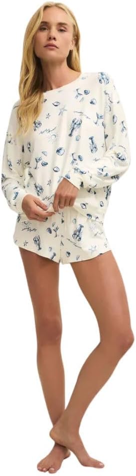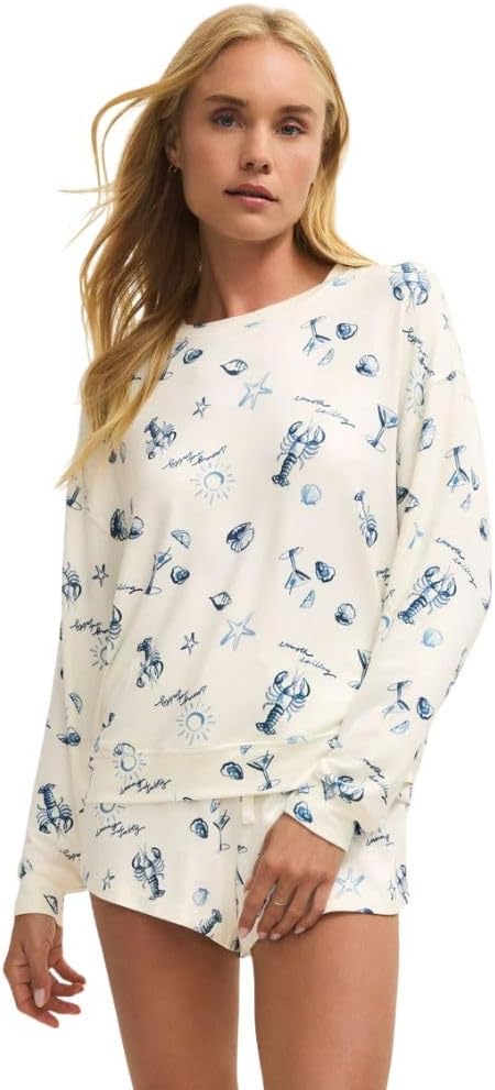 Dive into comfort with this charming Lost At Sea Long Sleeve Top from Z Supply. Crafted from their signature silky jersey blend of 95% Polyester and 5% Spandex, this loungewear piece offers an irresistibly soft and cozy feel. The relaxed-fit crew neck design features a whimsical nautical print in blue hues against a vanilla ice backdrop, creating a playful seaside-inspired aesthetic. Perfect for both lounging at home or casual outings, this versatile top combines style with supreme comfort. The long sleeves and relaxed silhouette ensure unrestricted movement, while the premium fabric maintains its shape and softness through machine washing. Complete your laid-back look by pairing it with matching bottoms for a coordinated set. Care is simple - machine wash cold on gentle cycle and either tumble dry low or lay flat to dry for best results.