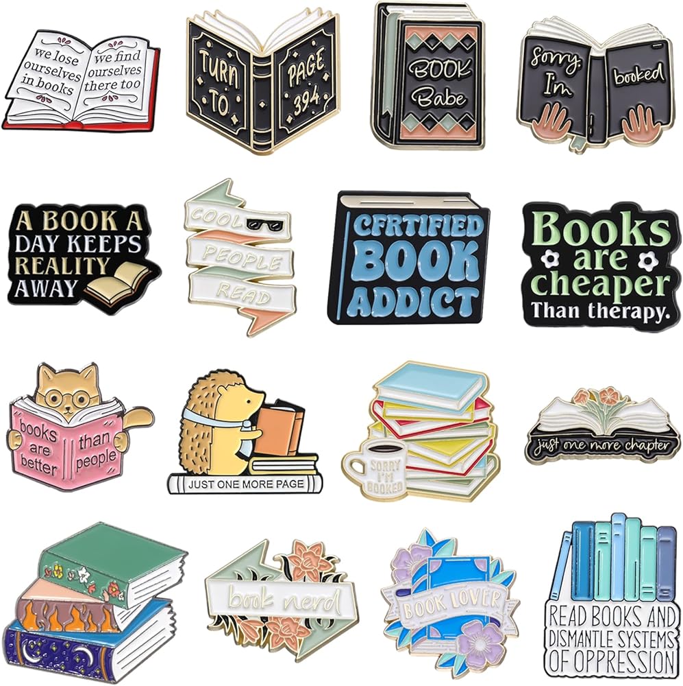 Book Themed Design: These books pins feature various book and reading-related cartoon pattern deasign, such as“Just One More Chapter”,“books are better than people”...great book gift for book lovers and readers