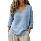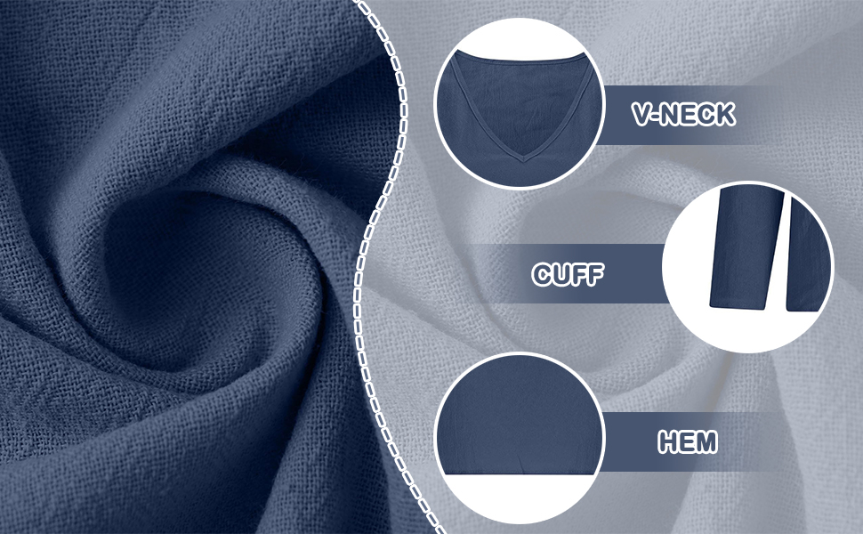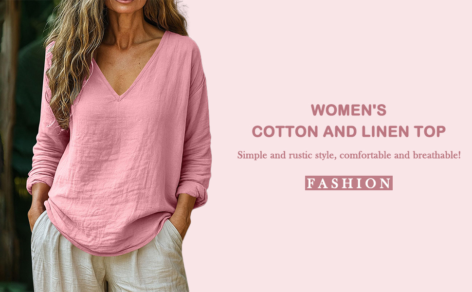 Fabric & All-Day Comfort:Crafted from lightweight, breathable Cotton linen fabric, this women's V-neck blouse delivers a soft, airy feel that supports airflow in warm weather. The natural texture keeps you comfortable during extended wear, making it suitable for daily routines, travel, and outdoor activities.