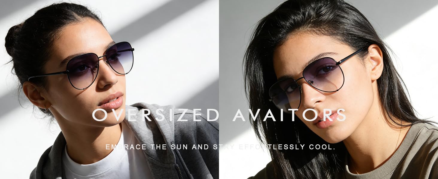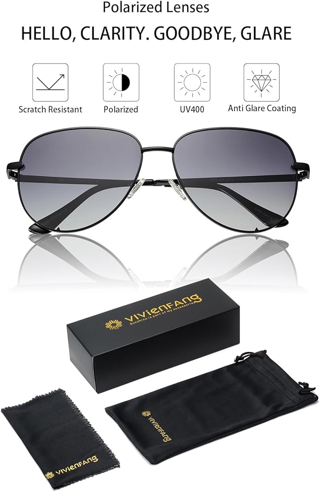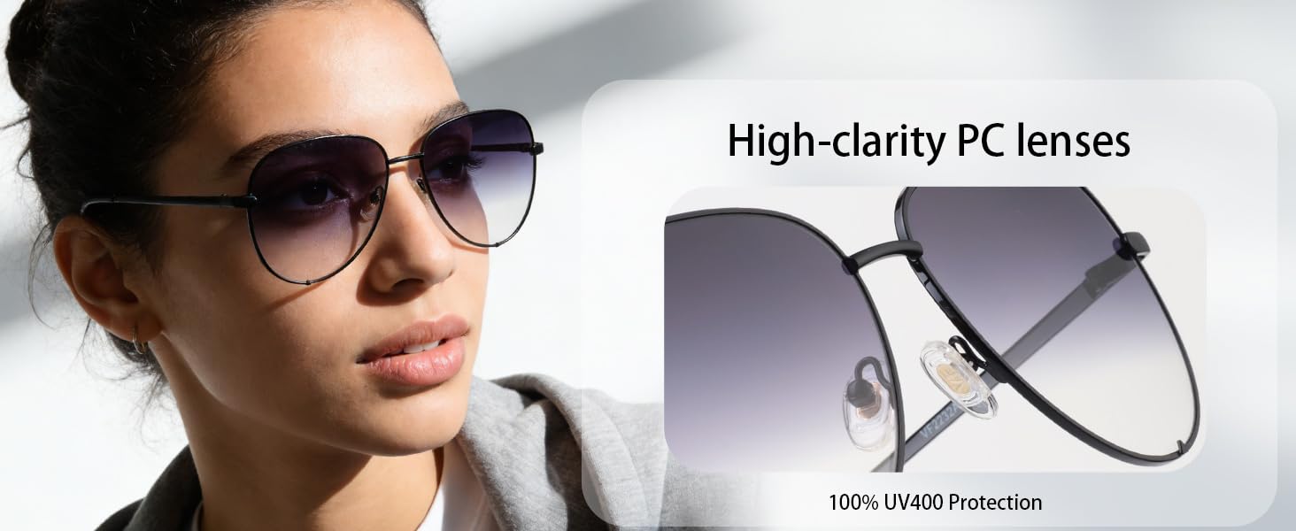 Black aviator sunglasses for women: This black womens sunglasses are meticulously designed with attention to detail, ensuring that you stand out from the crowd with an exclusive accessory that combines style, durability, and exceptional quality.The soft silicon nose pads offer a secure and comfortable fit, preventing discomfort and slippage, so you can wear these sunglasses for extended periods without any irritation.