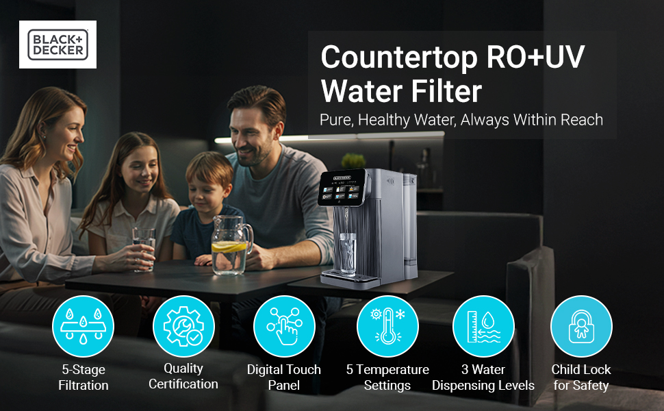 BLACK+DECKER Countertop RO+UV Water Filter | Hot and Ambient Water | 5-Stage Filtration System with Remineralization | IAPMO Tested and NSF Certified | No Installation Required | Portable water Filter
