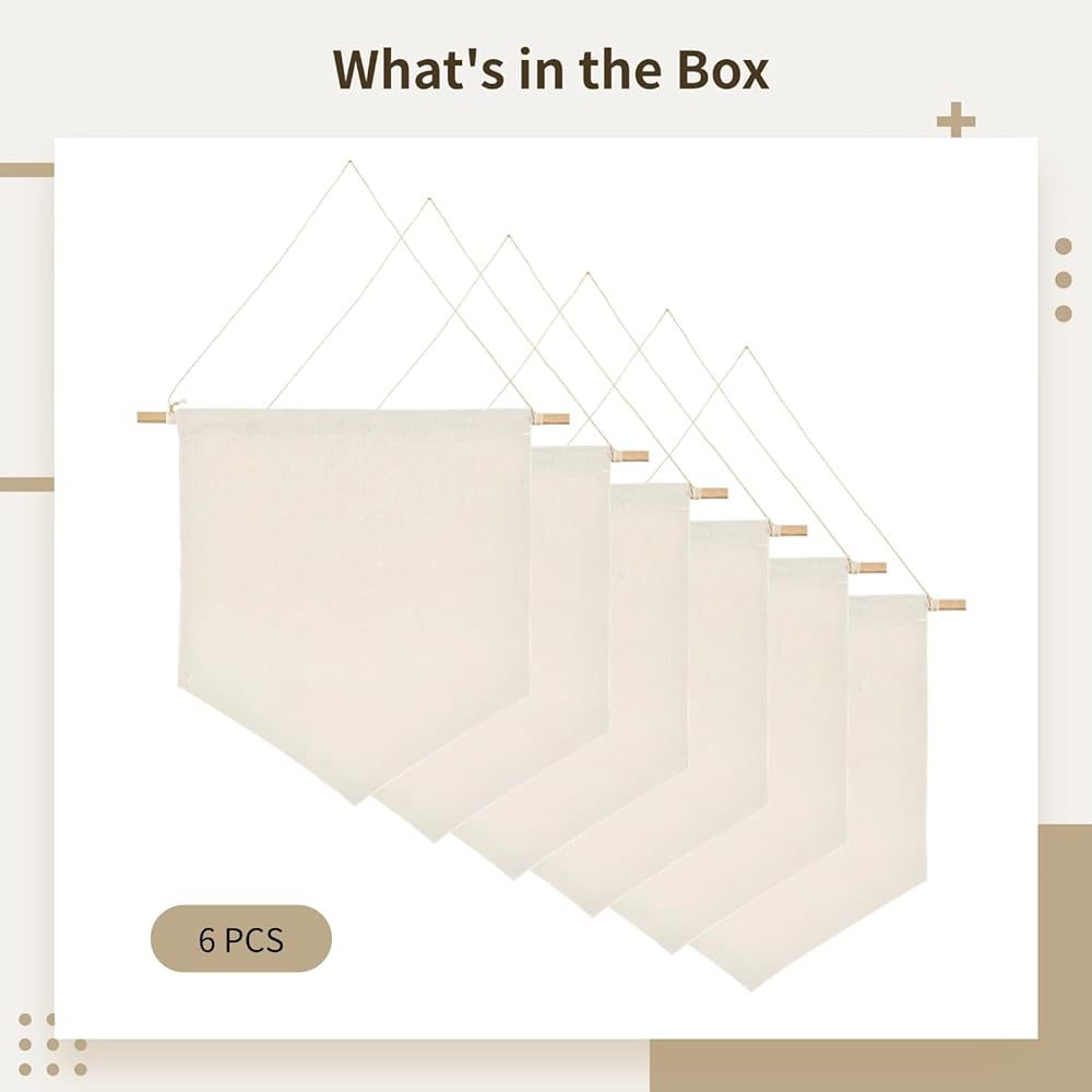 Quality Construction: These banners are constructed from natural canvas and wooden dowels with stitched edges; the beige fabric is strong to resist tears and stains and keep pins displayed