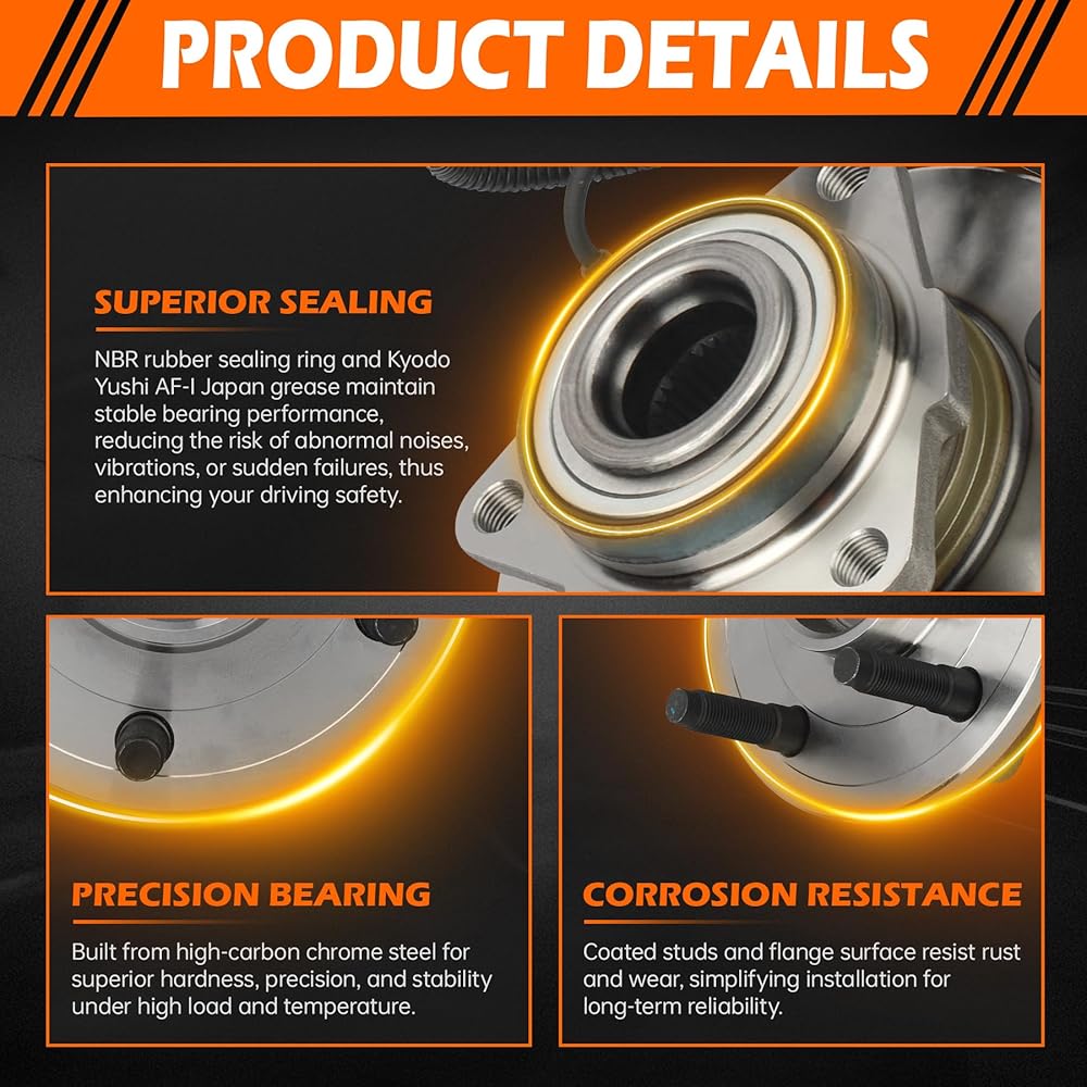 Superior Quality Materials: GAHA hub bearings are made of premium steel and high-grade components for OE-level performance and durability. Optimized preload and Japan's Kyodo Yushi AF-I grease reduce noise and wear, extending service life, while 10.9-grade bolts and a reinforced Nylon 66 + 25% fiberglass cage ensure strength and reliability. To enhance performance, GAHA uses a 10/08F steel plate and NBR rubber seal, providing protection against dirt and moisture for smooth, quiet operation.