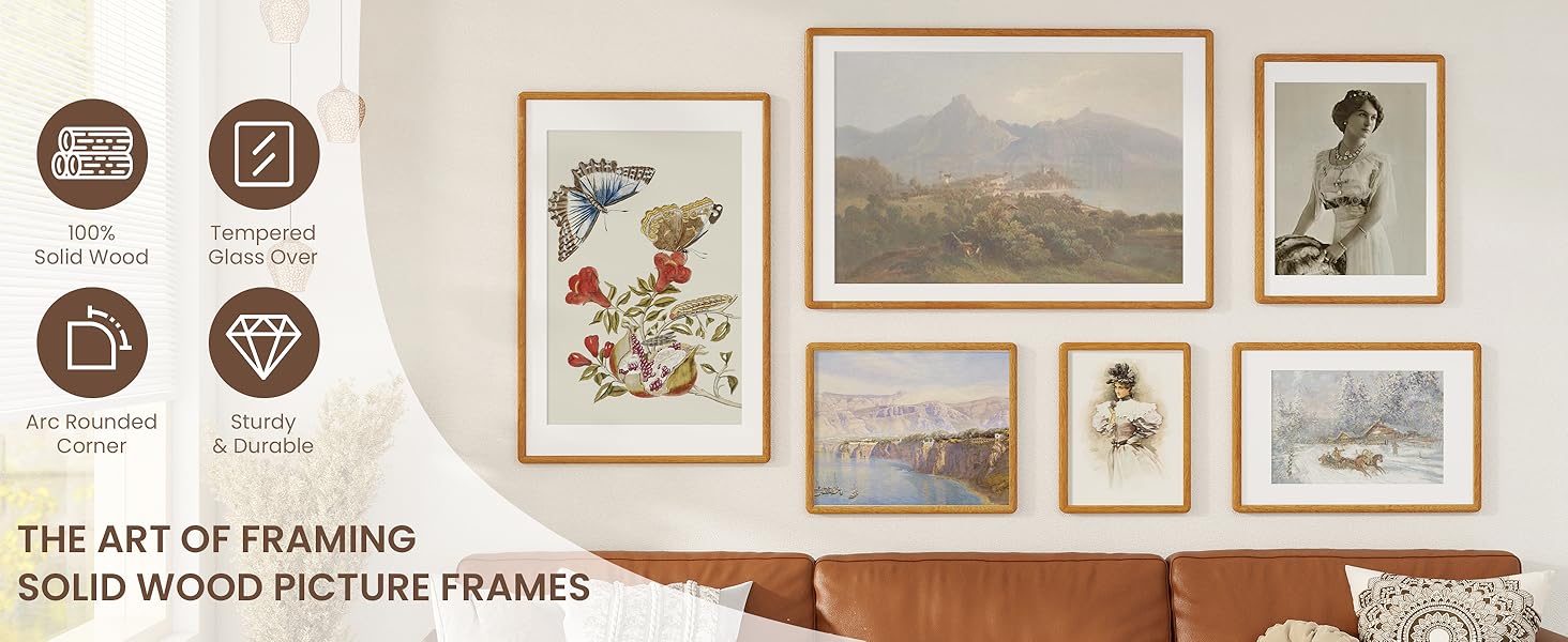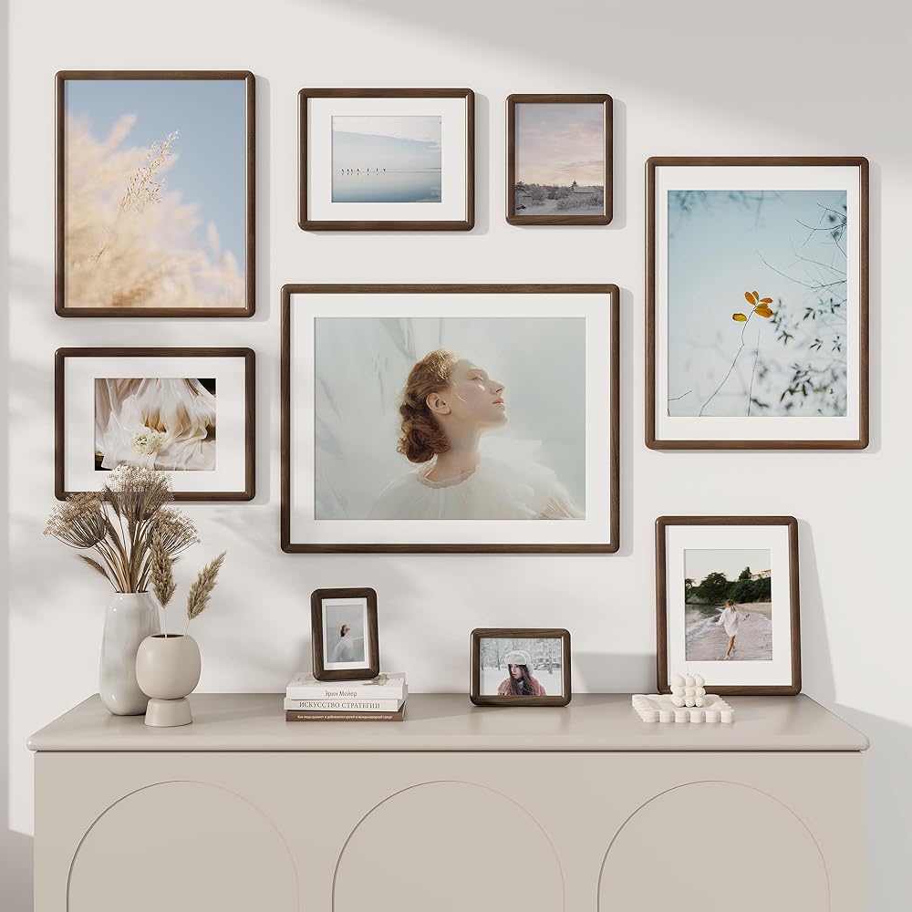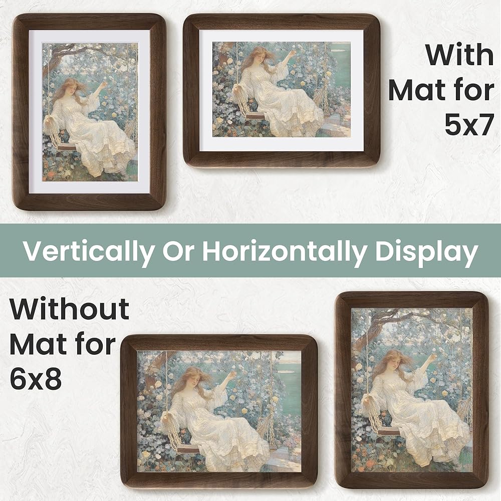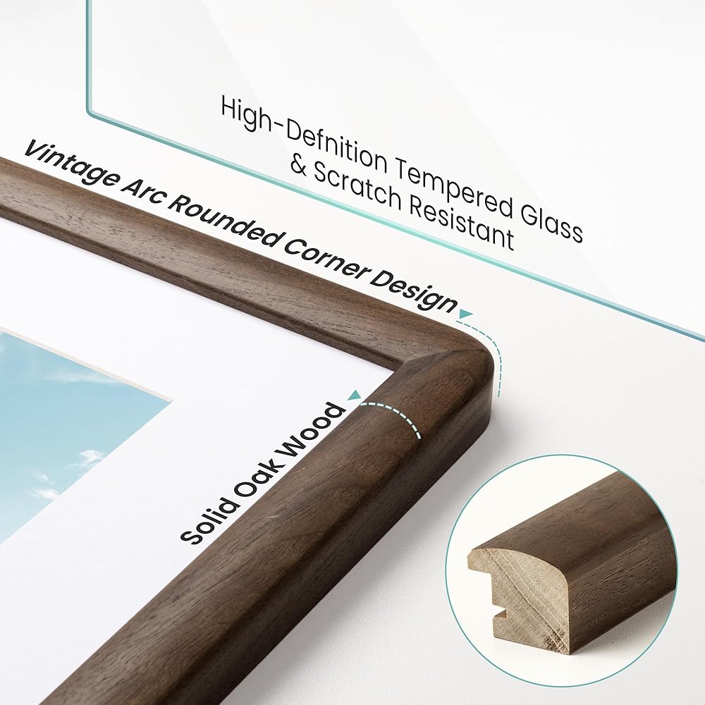 [Solid Wood Material] - Our natural wood frame is meticulously crafted from 100% premium Walnut. The unique grain pattern adds character and sophistication, seamlessly enhancing a wide range of decorative styles. Elevate your space with a frame that not only showcases your cherished memories but also embodies lasting elegance and quality.