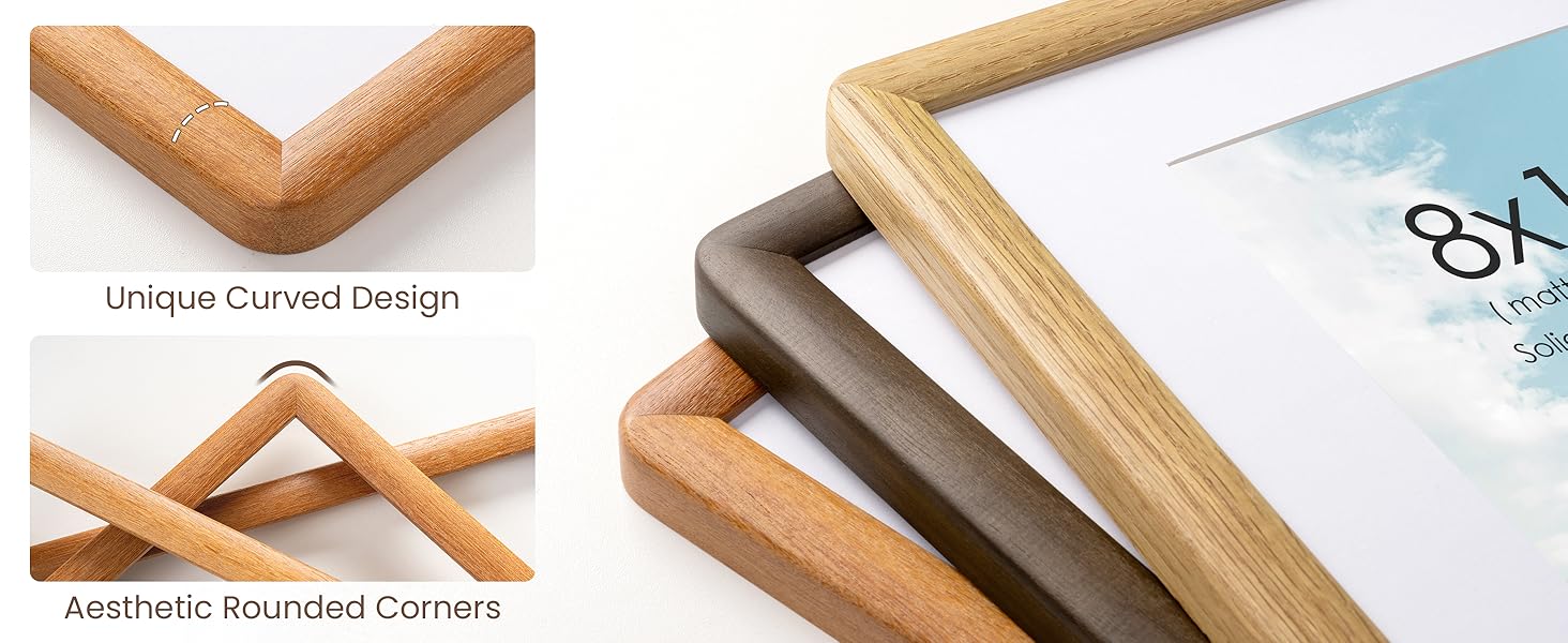[Unique Design] Featuring an elegant curved edge and Rounded Corner design, not only adding decorative charm but also providing a soft edge for photos or artworks, highlighting their beauty,The frame's welcoming rounded corners eliminate the risk of sharp impacts(Kid-friendly).