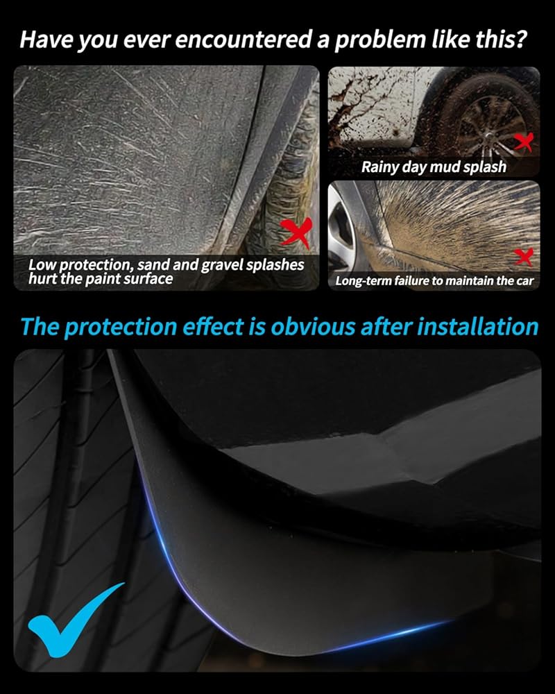 ✔️【NEW UPGRADE】The front and rear four wheels are installed fenders, rainy day driving your car and your car must be cleaner than others
