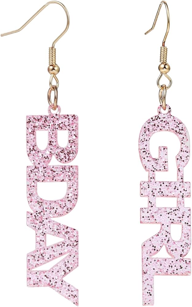 Shining BDAY Letter Happy Birthday Resin Earrings for Women Jewelry