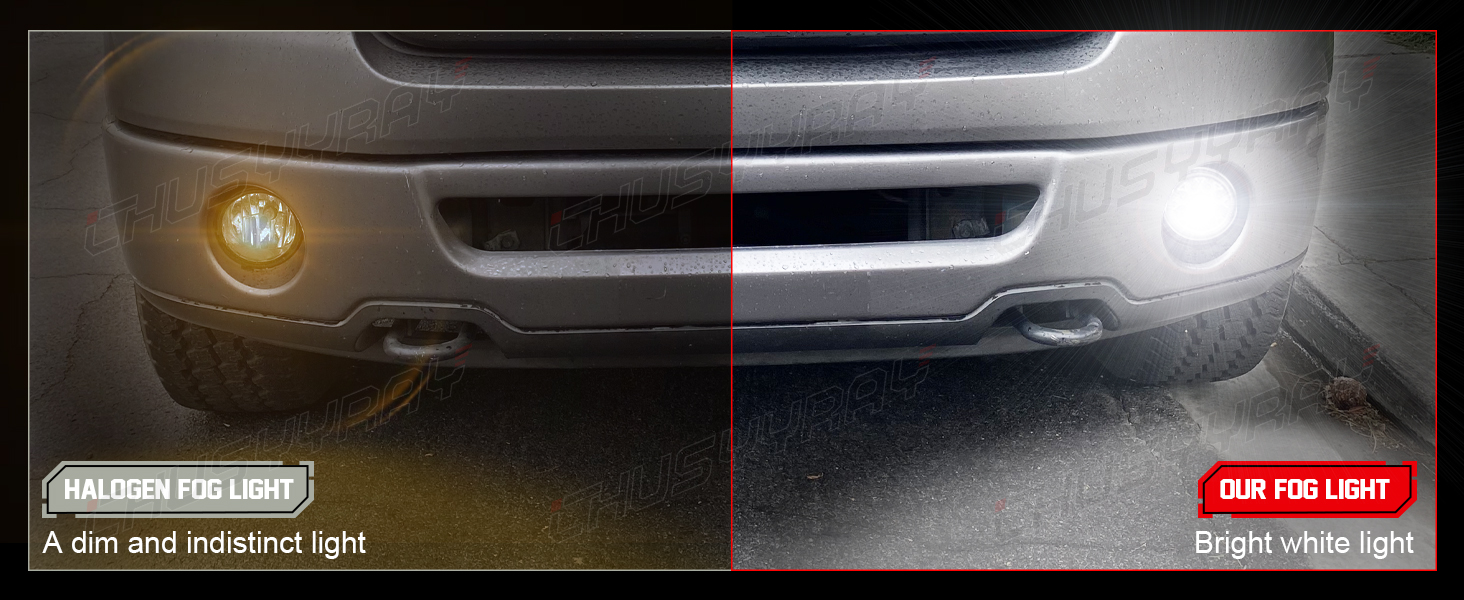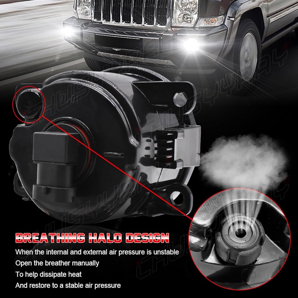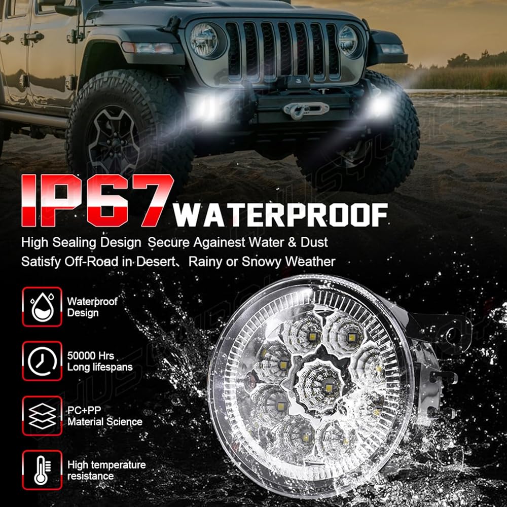 【Rugged and Durable Structure】Waterproof IP86, sturdy shatterproof lens, fully sealed, waterproof, impact-resistant, corrosion-resistant, durable. The superior glass lens features higher transmittance, UV and heatresistance, compatible with OEM-grade housing design, no flicker, perfect replacement for broken halogen fog lamps.