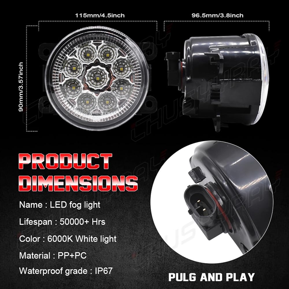 【Easy to Install】Quick and easy to install, equipped with all necessary hardware, including adjustment screws, no modification, direct replacement, the same function as the original fog lamps, Professional Installation Is Highly Recommended! DOT & SAE Approved.