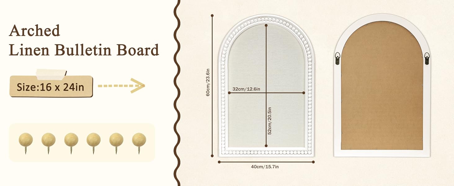Distinctive Arch Shape : Unlike ordinary rectangular pin boards, this one has a unique arched design.The design features a wooden frame with a circular row of beads embedded in the center. It looks beautiful and is also very practical. It comes with 6 push - pins, which makes it really easy to use