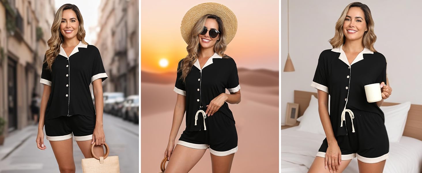 OCCASION: This women's short-sleeve modal pajama set is suitable for daily wear, lounging, and sleeping. Comfortable and stylish, it's perfect for pajama parties, bridal events, girls' day out, hotel stays, vacations, travel, dorm rooms, or fun family pictures.