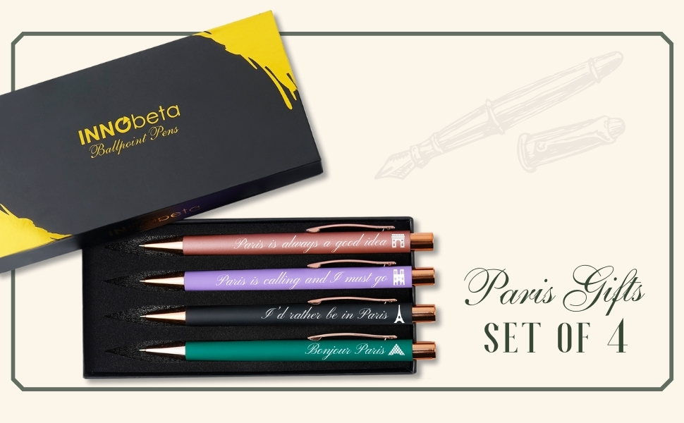 This gift box comes with four ballpoint pens, each featuring a unique inscription, making it a highly personalized gift for Paris lovers.