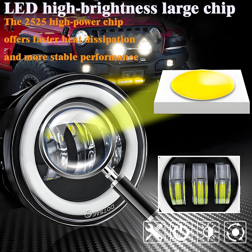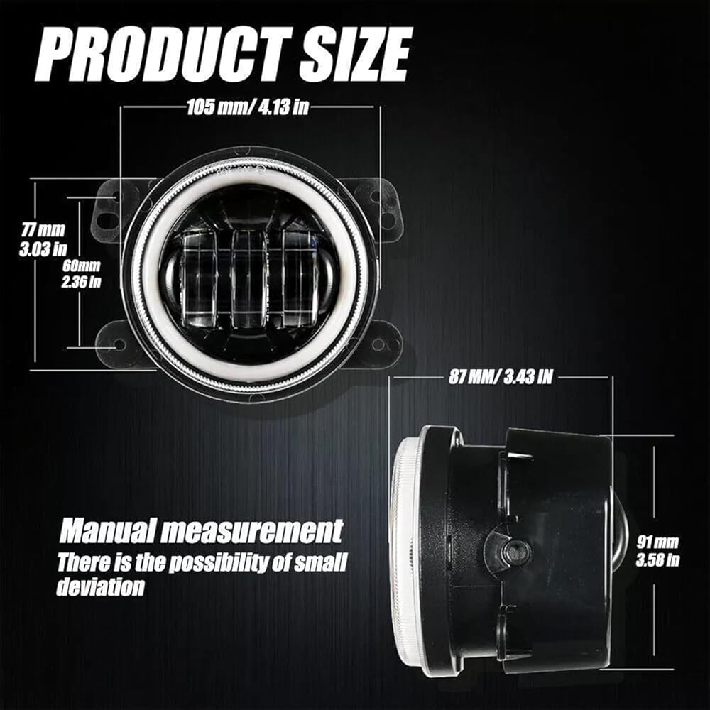 High Quality: Our halo ring 4 inch fog light adopt high quality chip, 100% brighter, higher color temperature and a much wider field of light dispersion than stock halogen lamps and HID headlight, last more than 50,000 hours,DOT approval, IP67 waterpreef. Perfect choice if you want to upgrade your halogen fog lights to LED driving fog lamps.